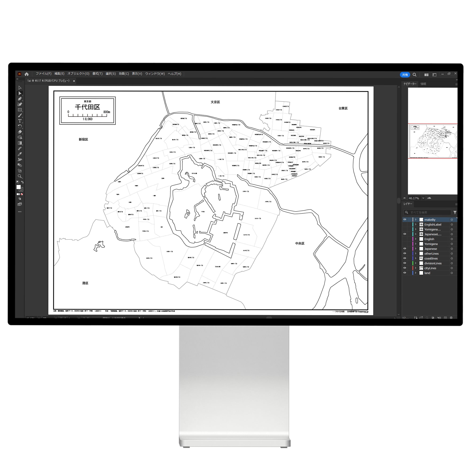 東京都千代田区:町名も記載の地図データ(PDF・Aiファイル)