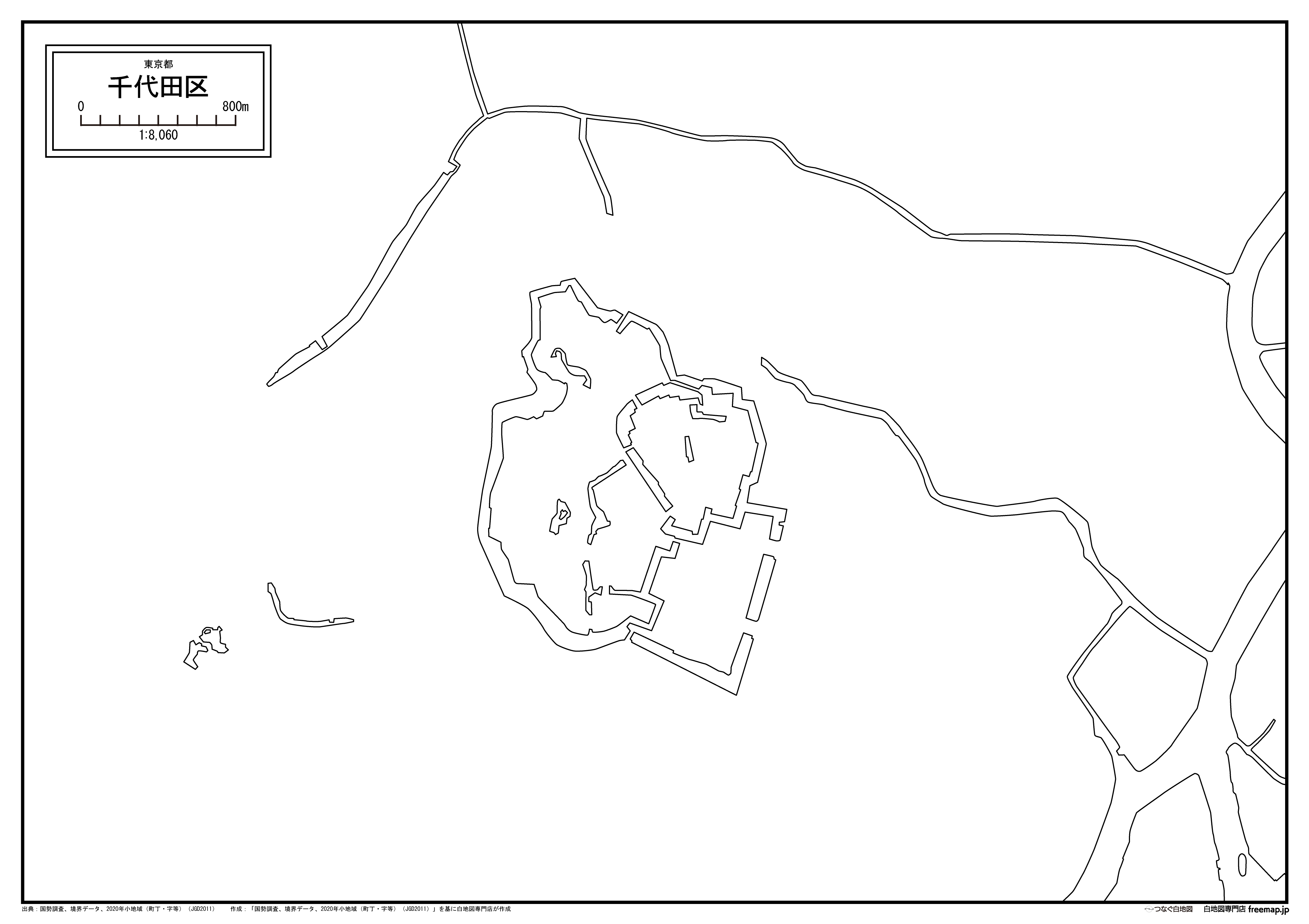 東京都千代田区の町名(町丁目)も記載した地図データです。