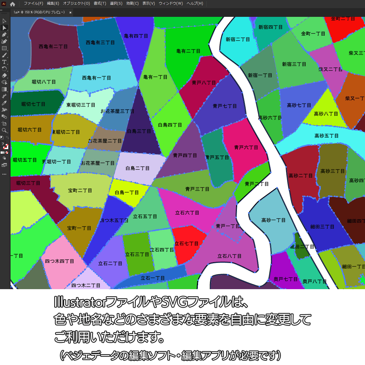 東京都葛飾区:町名も記載の地図データ(PDF・Aiファイル)