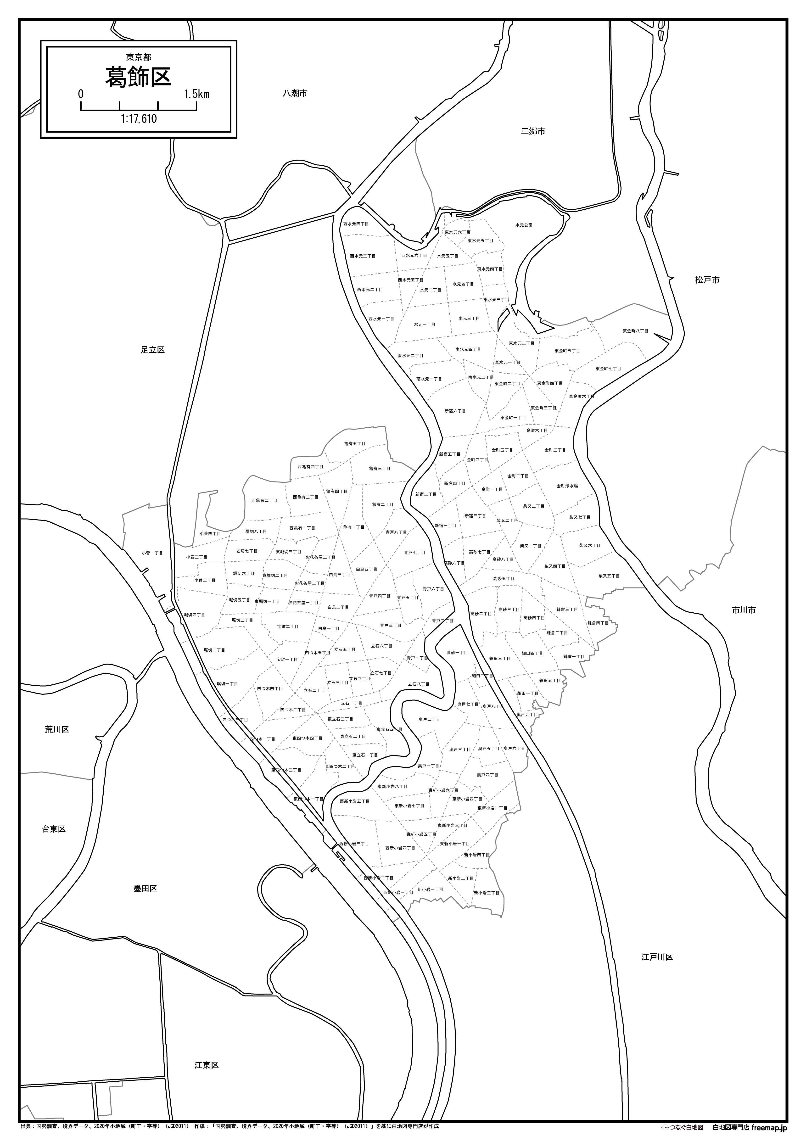 東京都葛飾区の町名(町丁目)も記載した地図データです。
