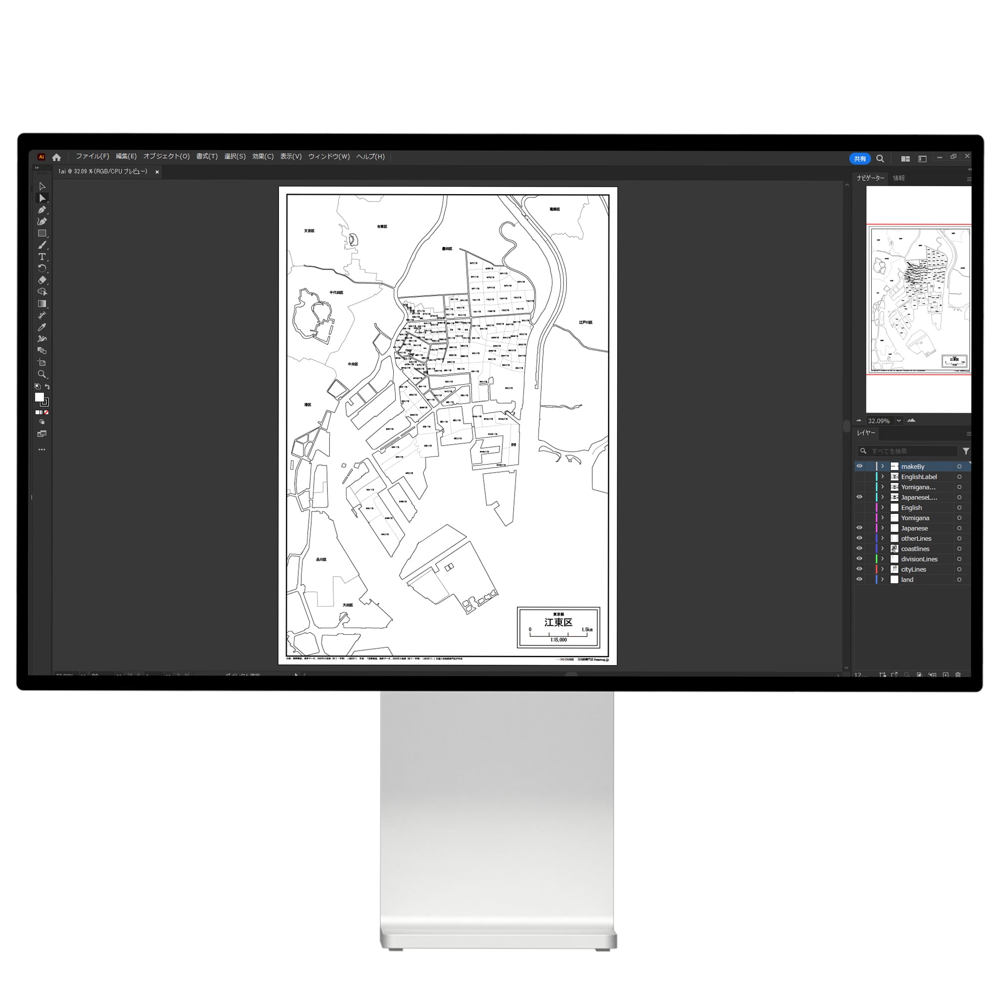 東京都江東区:町名も記載の地図データ(PDF・Aiファイル)
