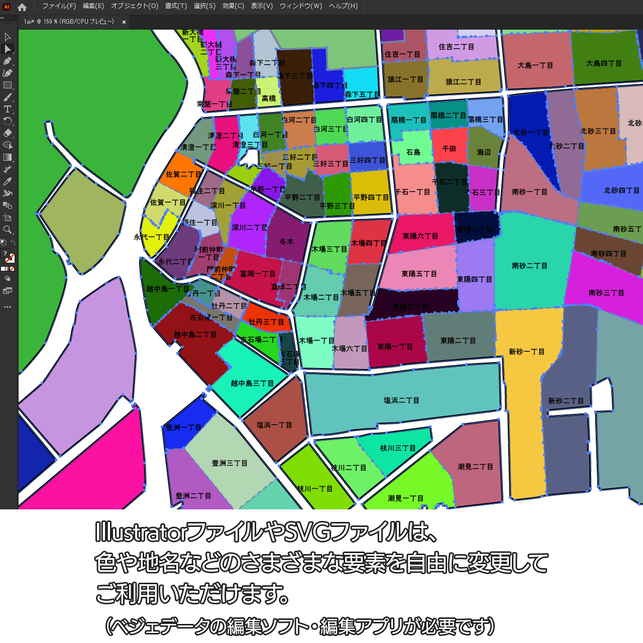 AiファイルはAdobe Illustratorで再編集可能な白地図データです。