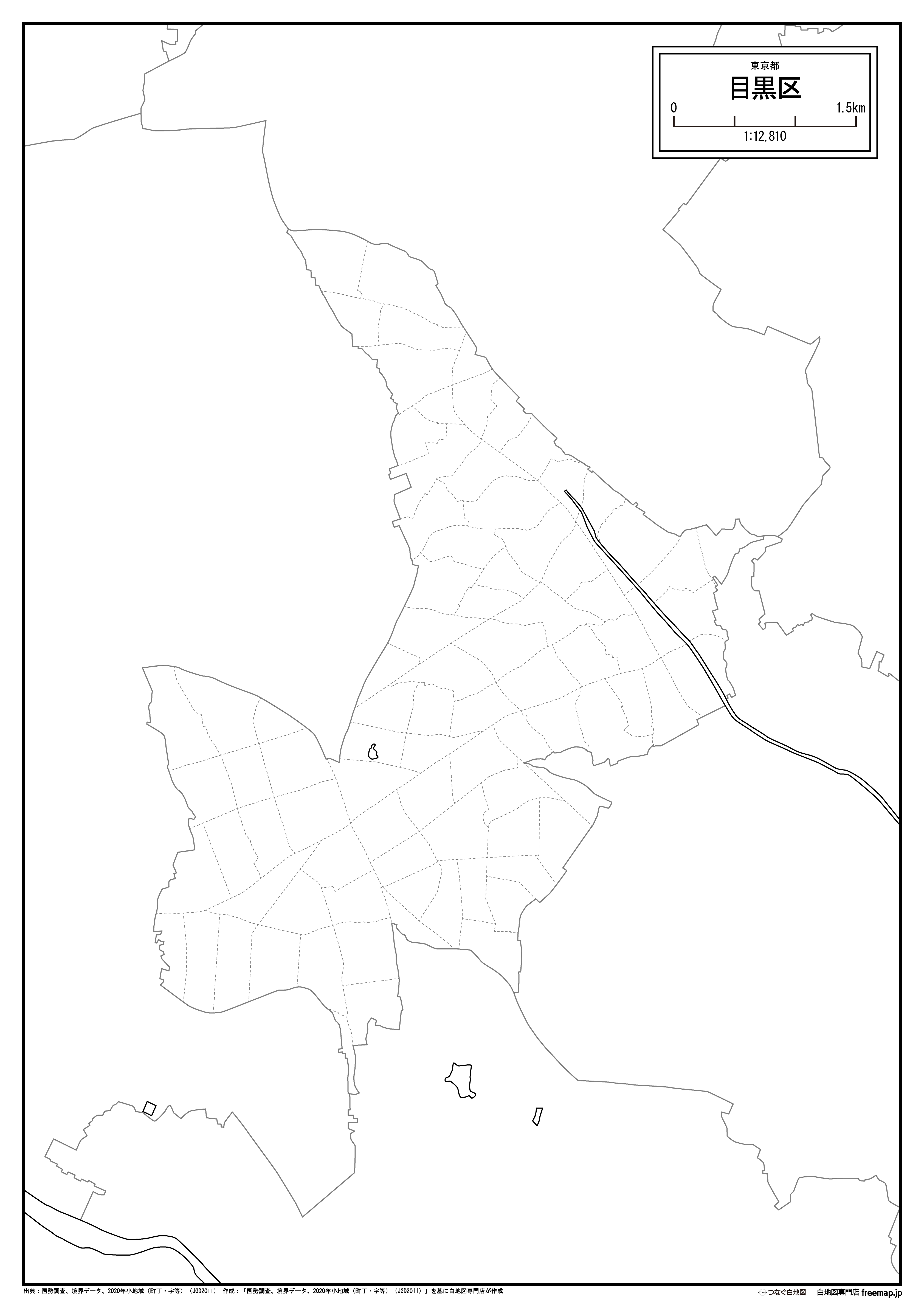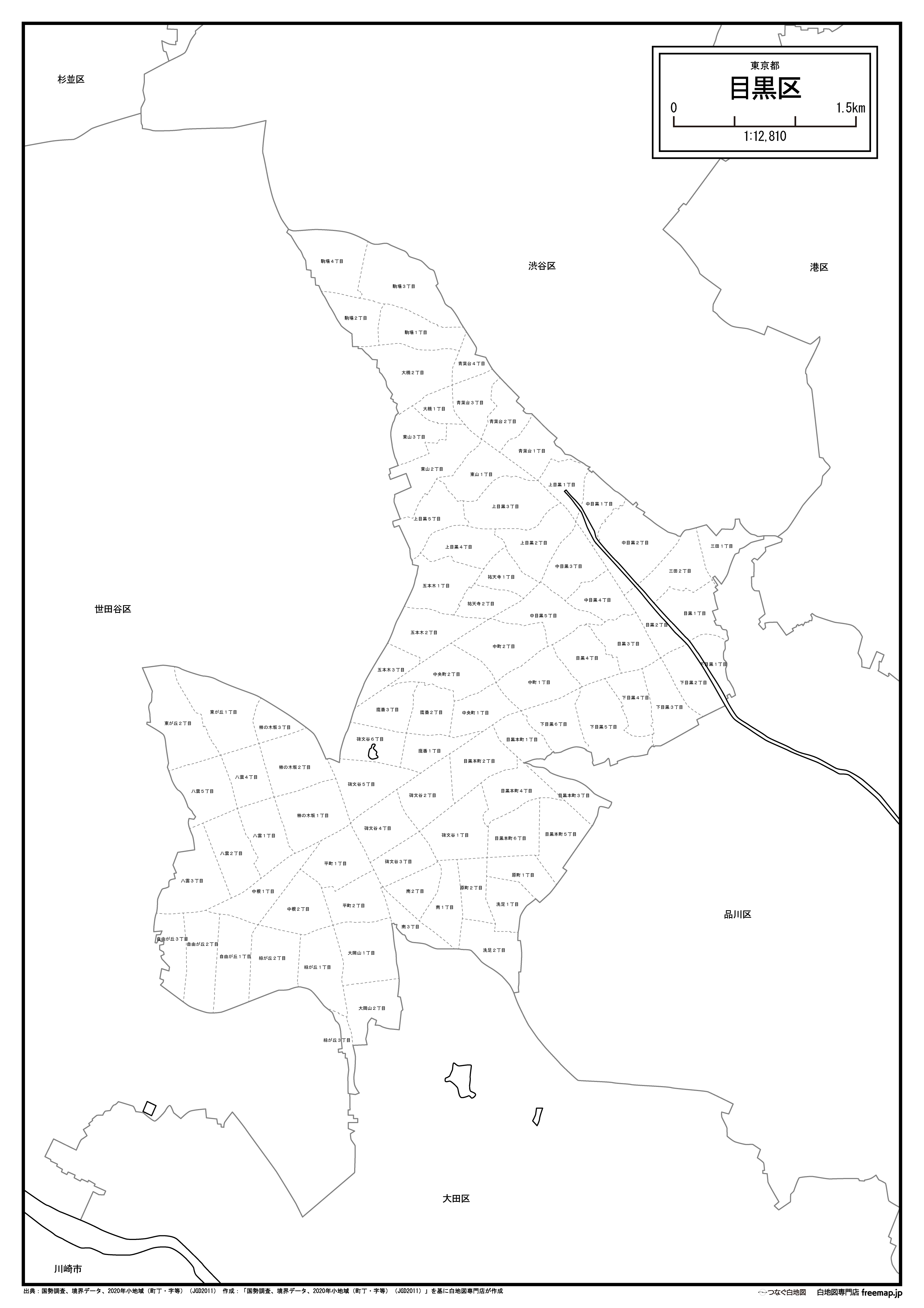 東京都目黒区の町名(町丁目)も記載した地図データです。