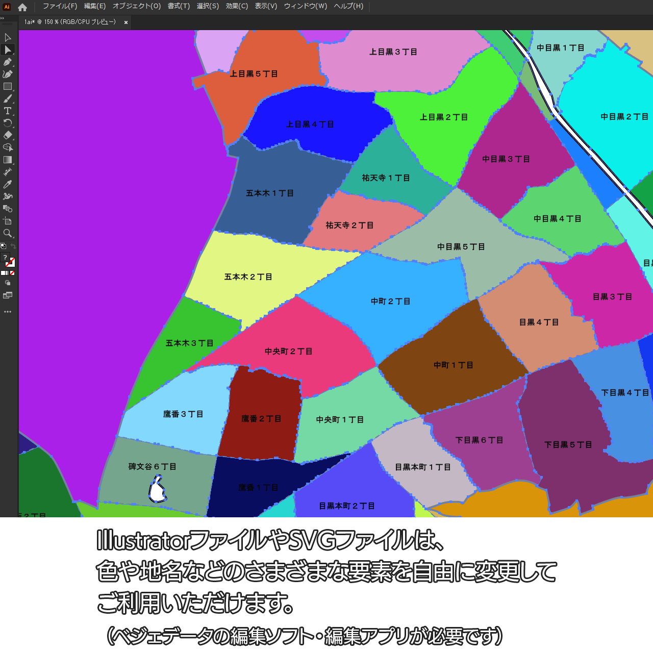 AiファイルはAdobe Illustratorで再編集可能な白地図データです。