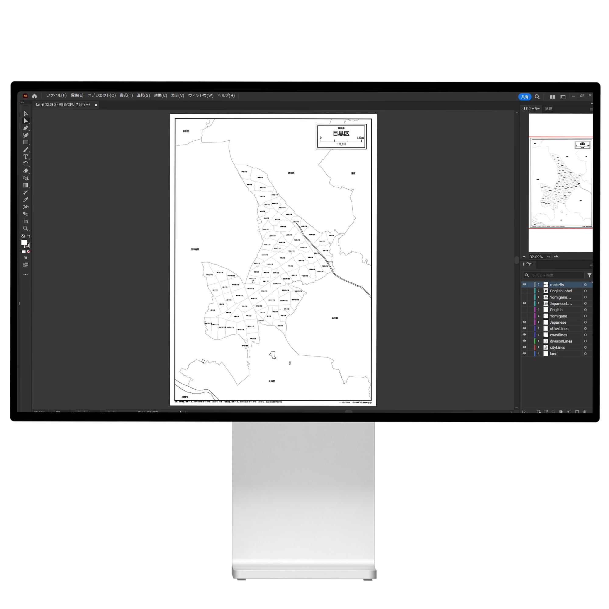 東京都目黒区:町名も記載の地図データ(PDF・Aiファイル)