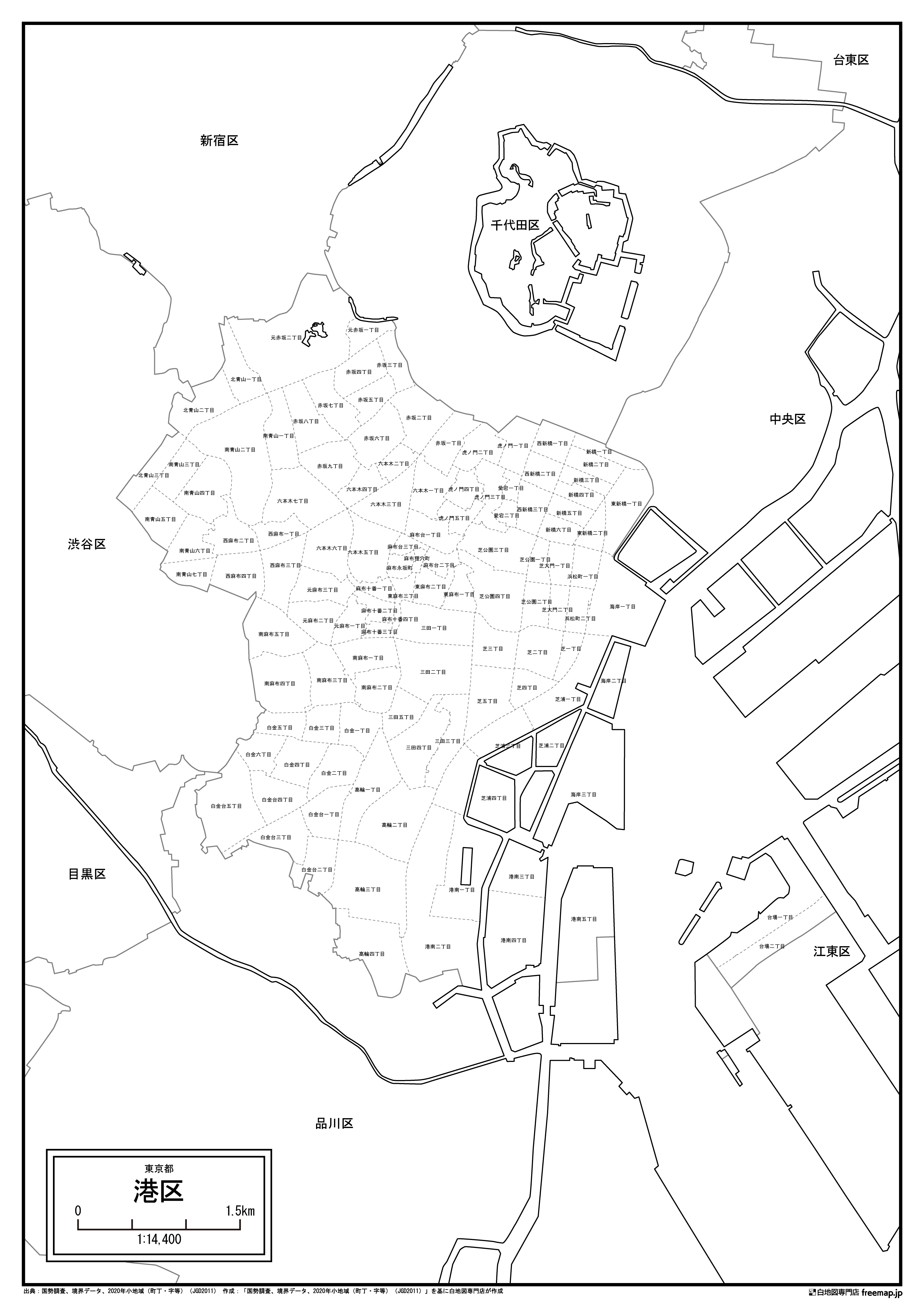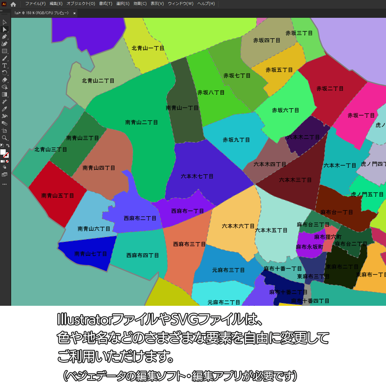 東京都港区:町名も記載の地図データ(PDF・Aiファイル)