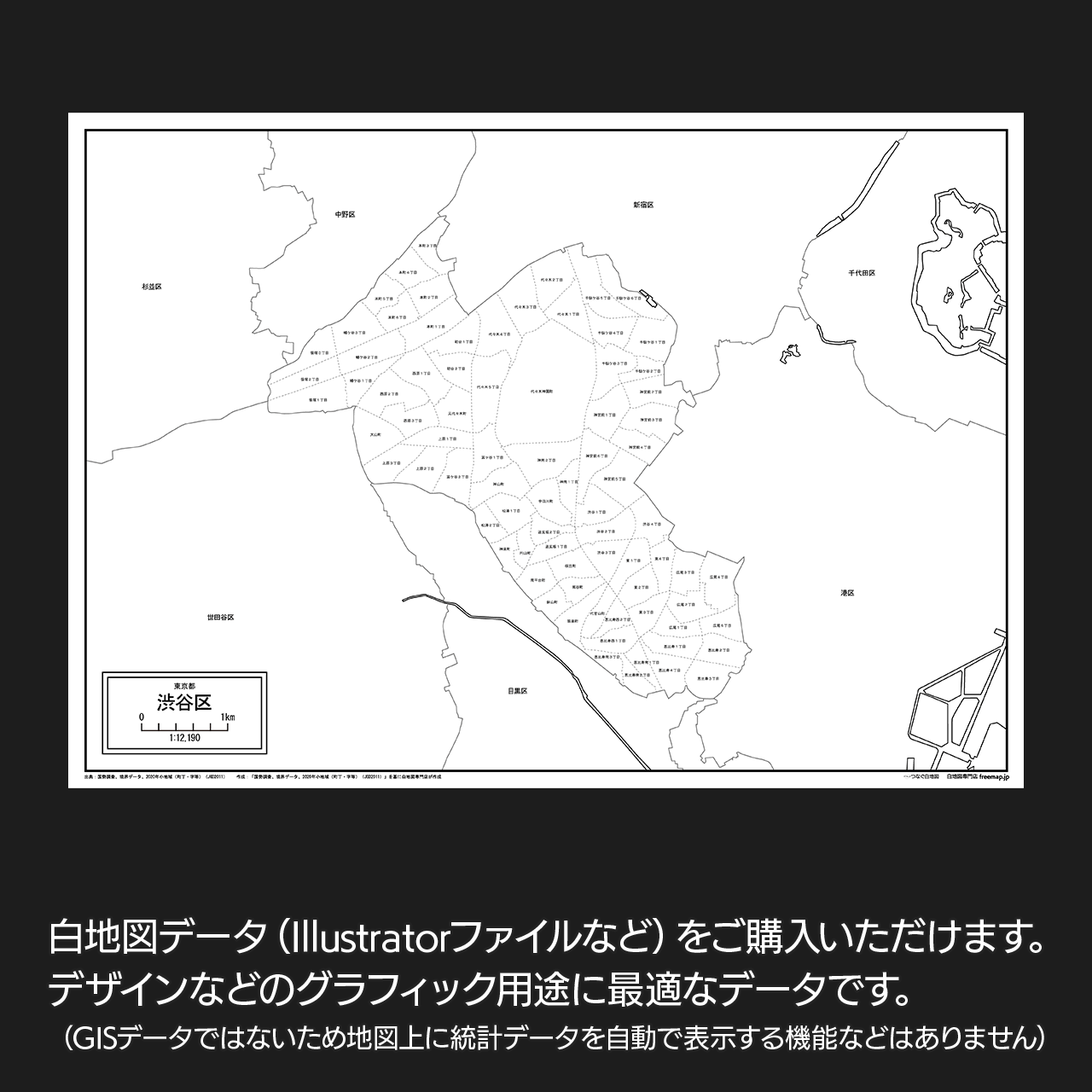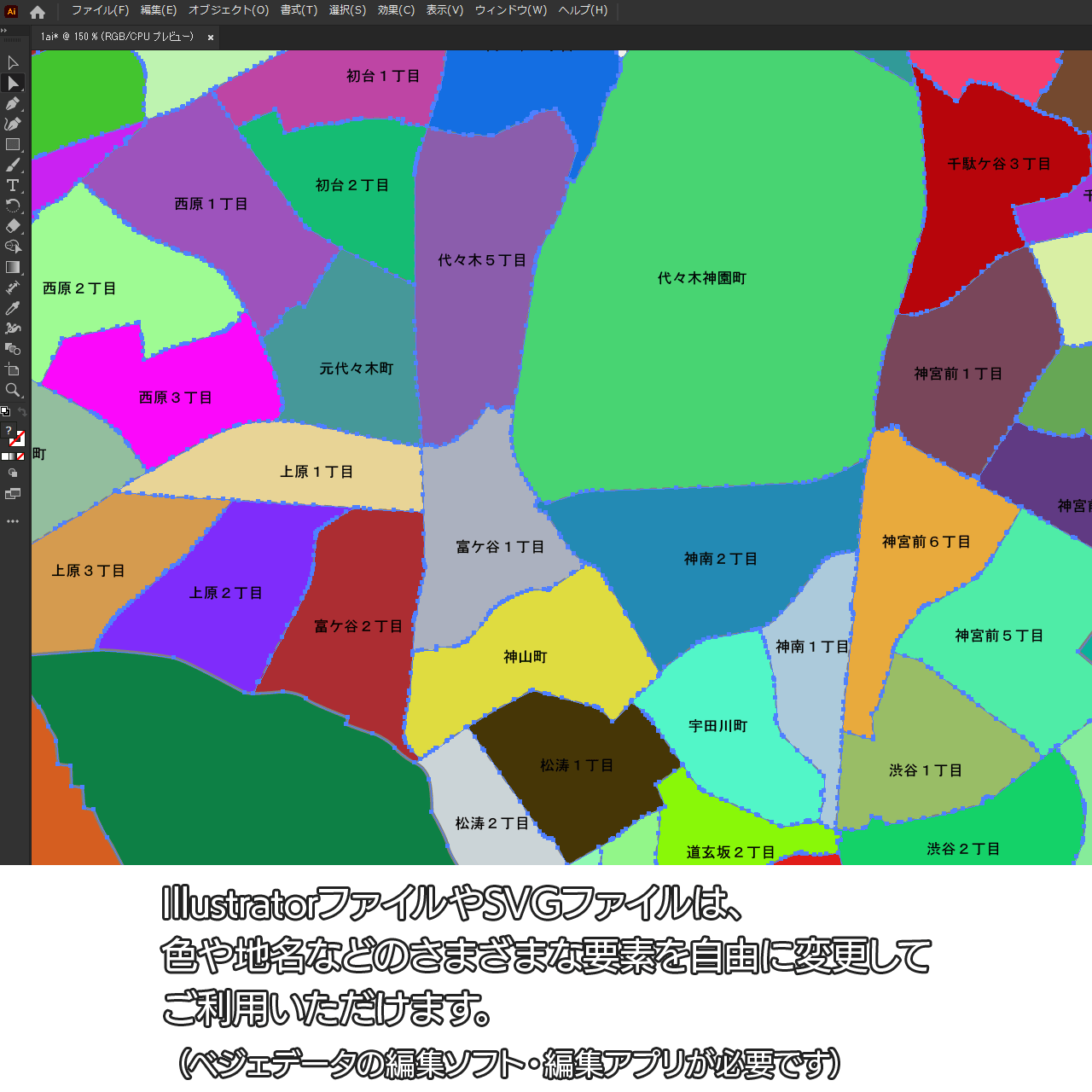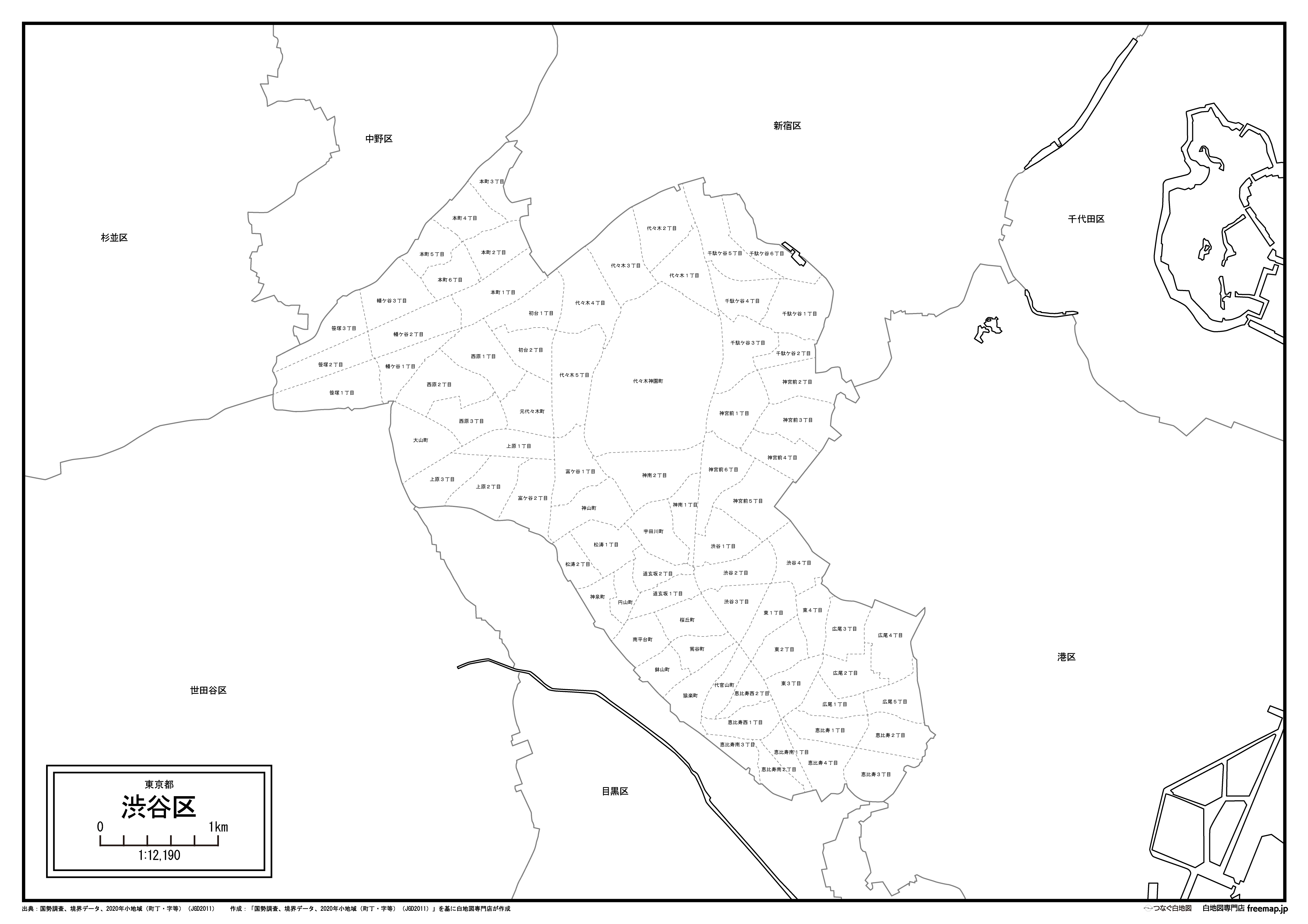 東京都渋谷区:町名も記載の地図データ(PDF・Aiファイル)
