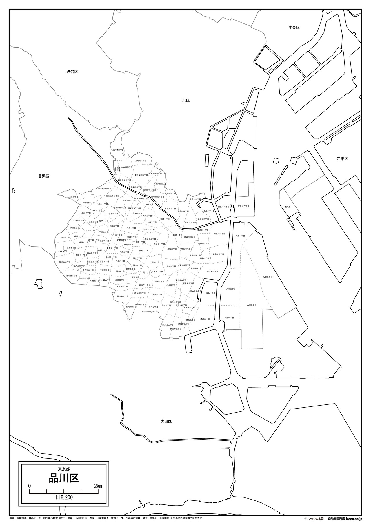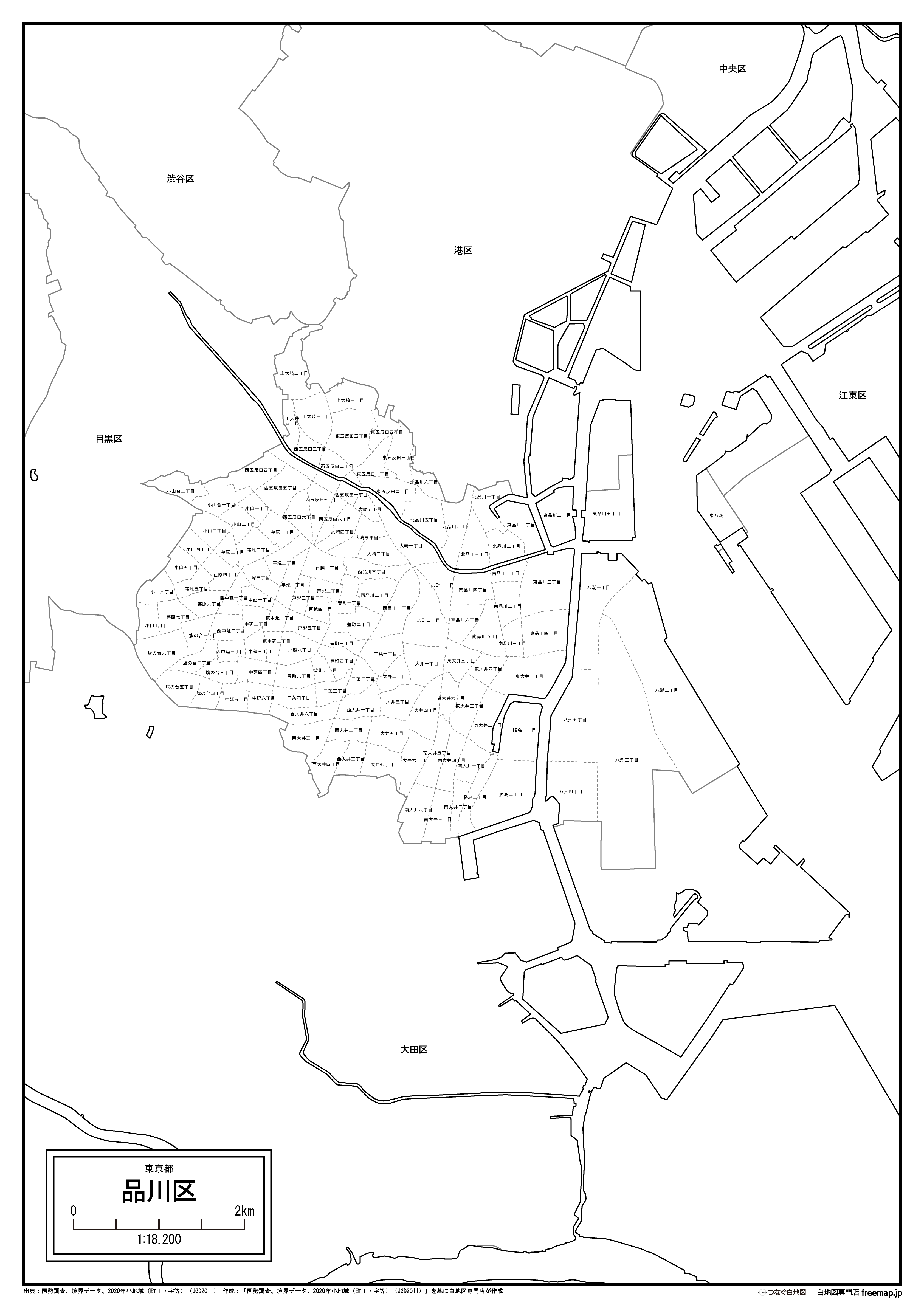 東京都品川区の町名(町丁目)も記載した地図データです。