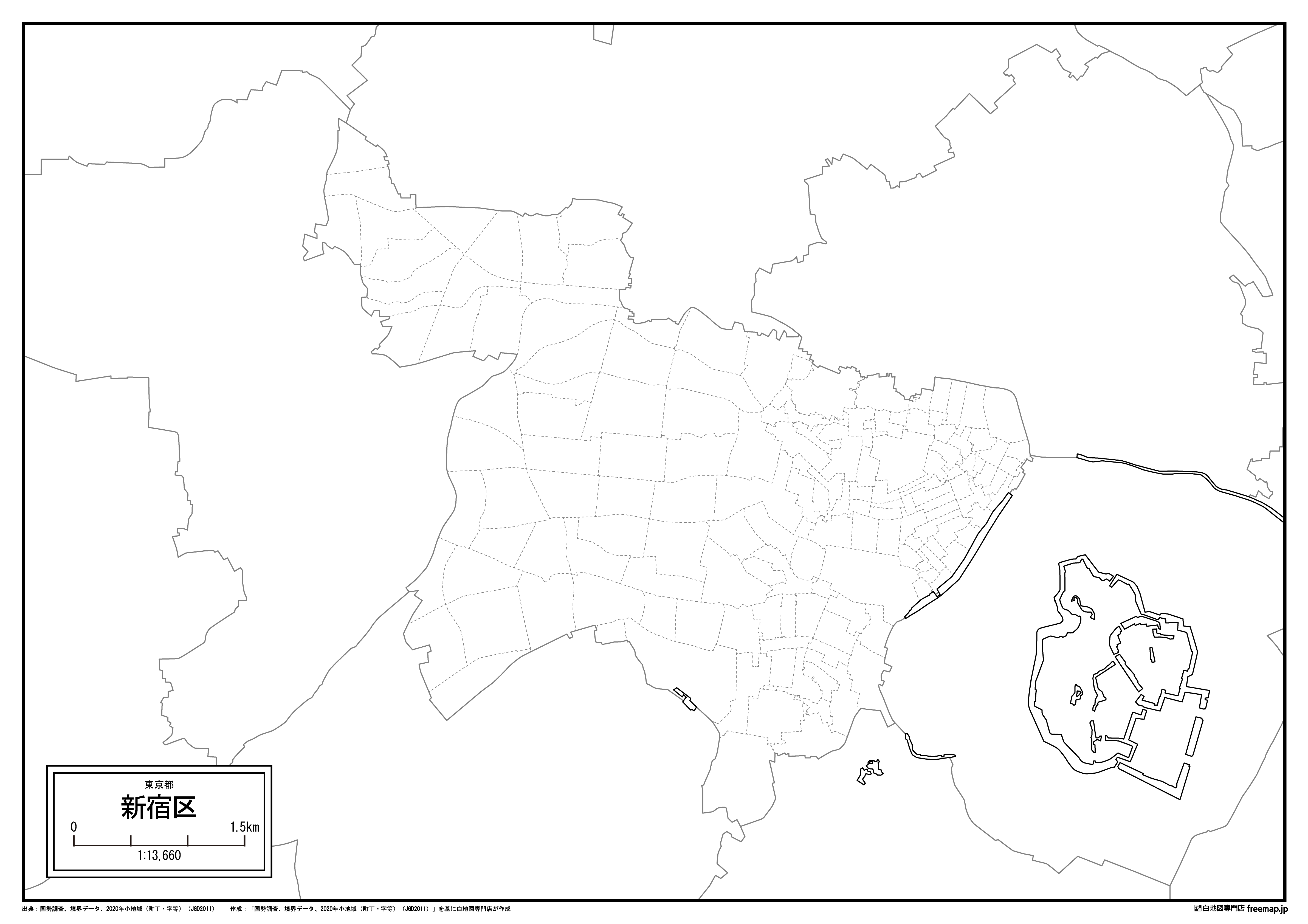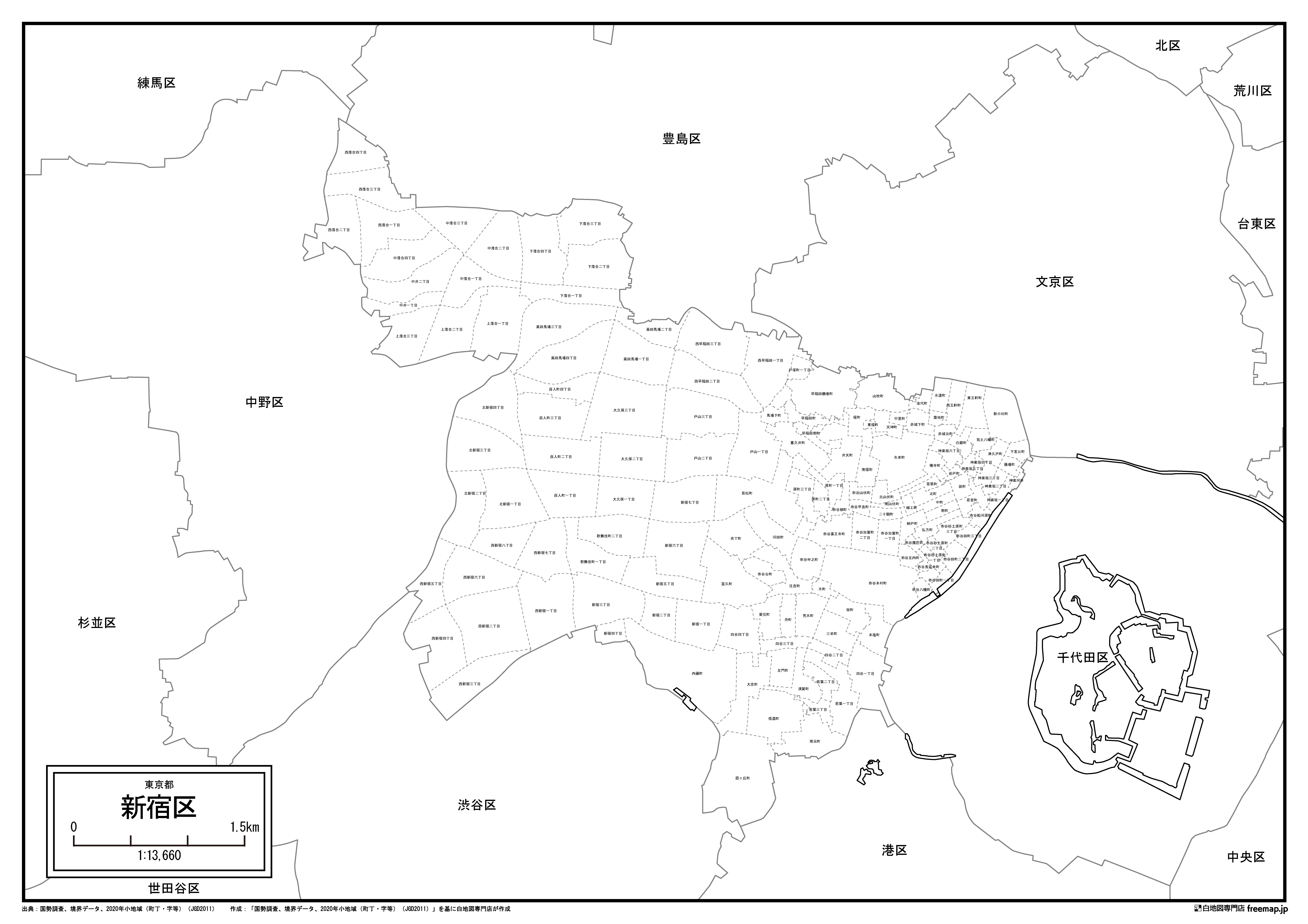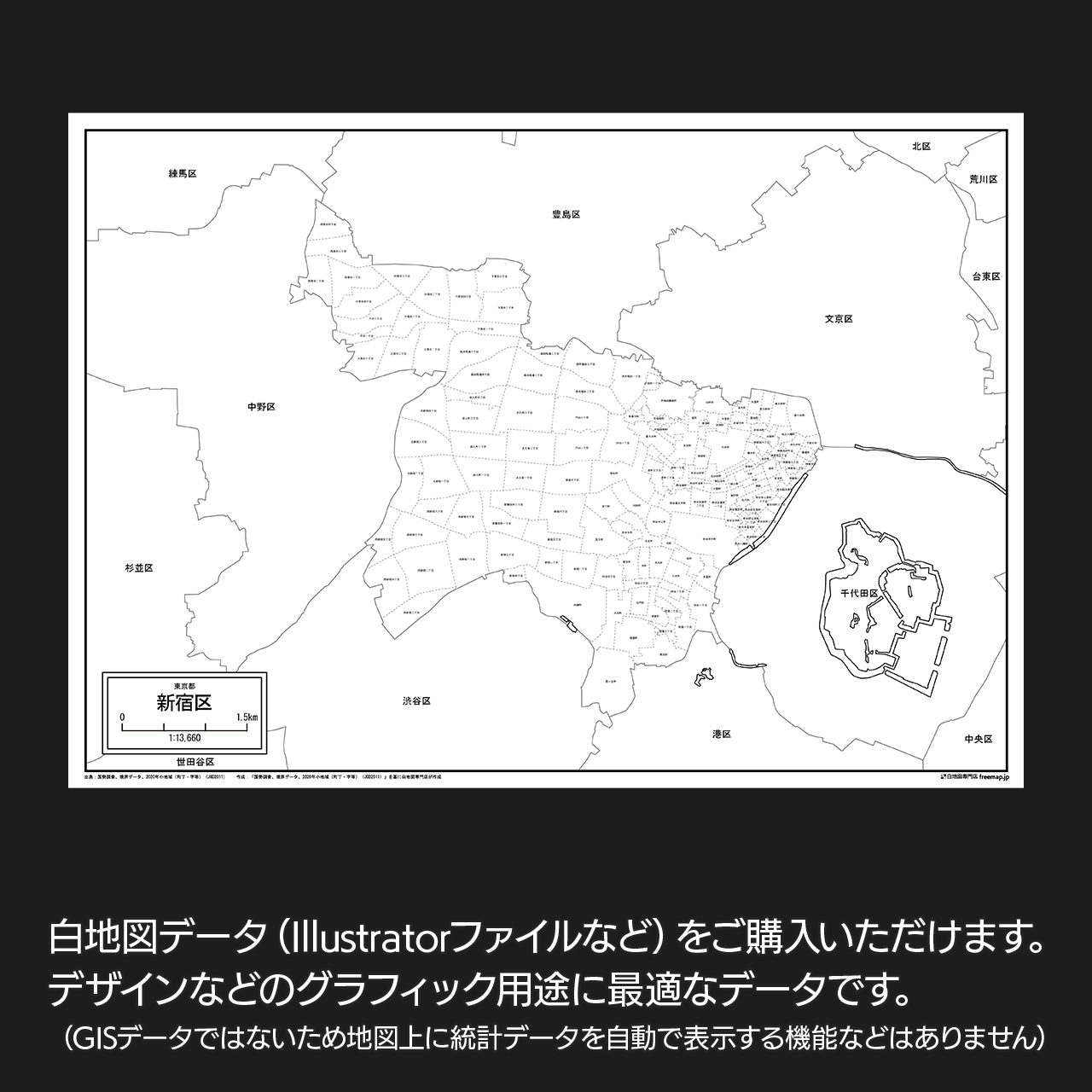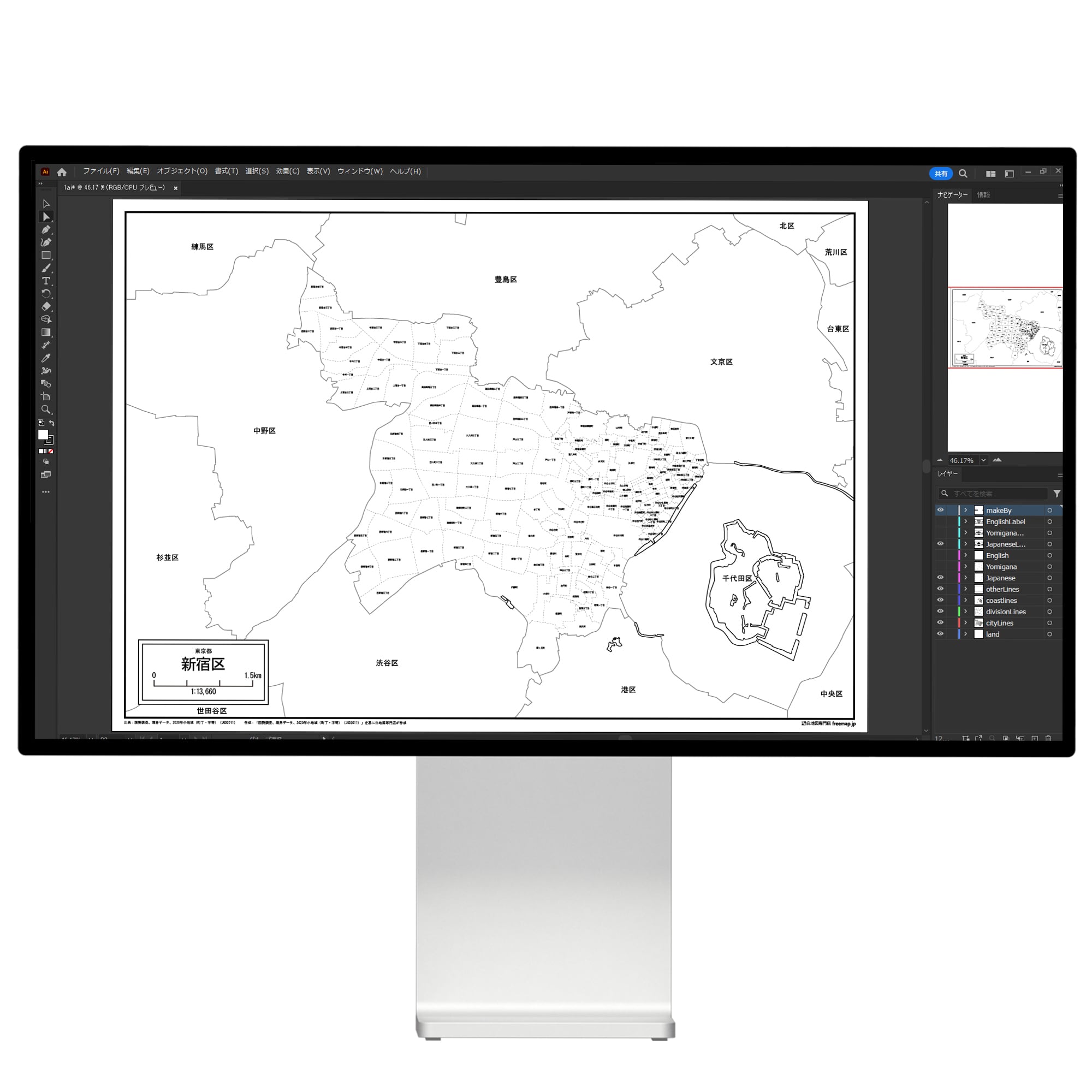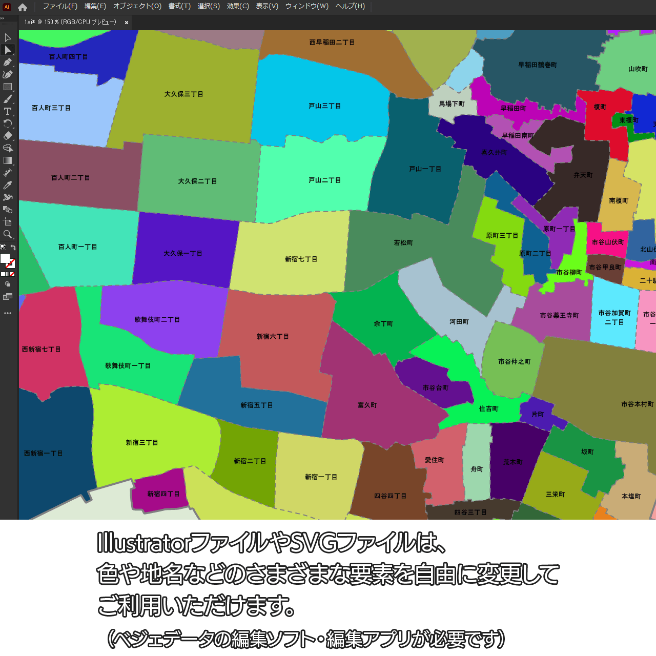 東京都新宿区:町名も記載の地図データ(PDF・Aiファイル)