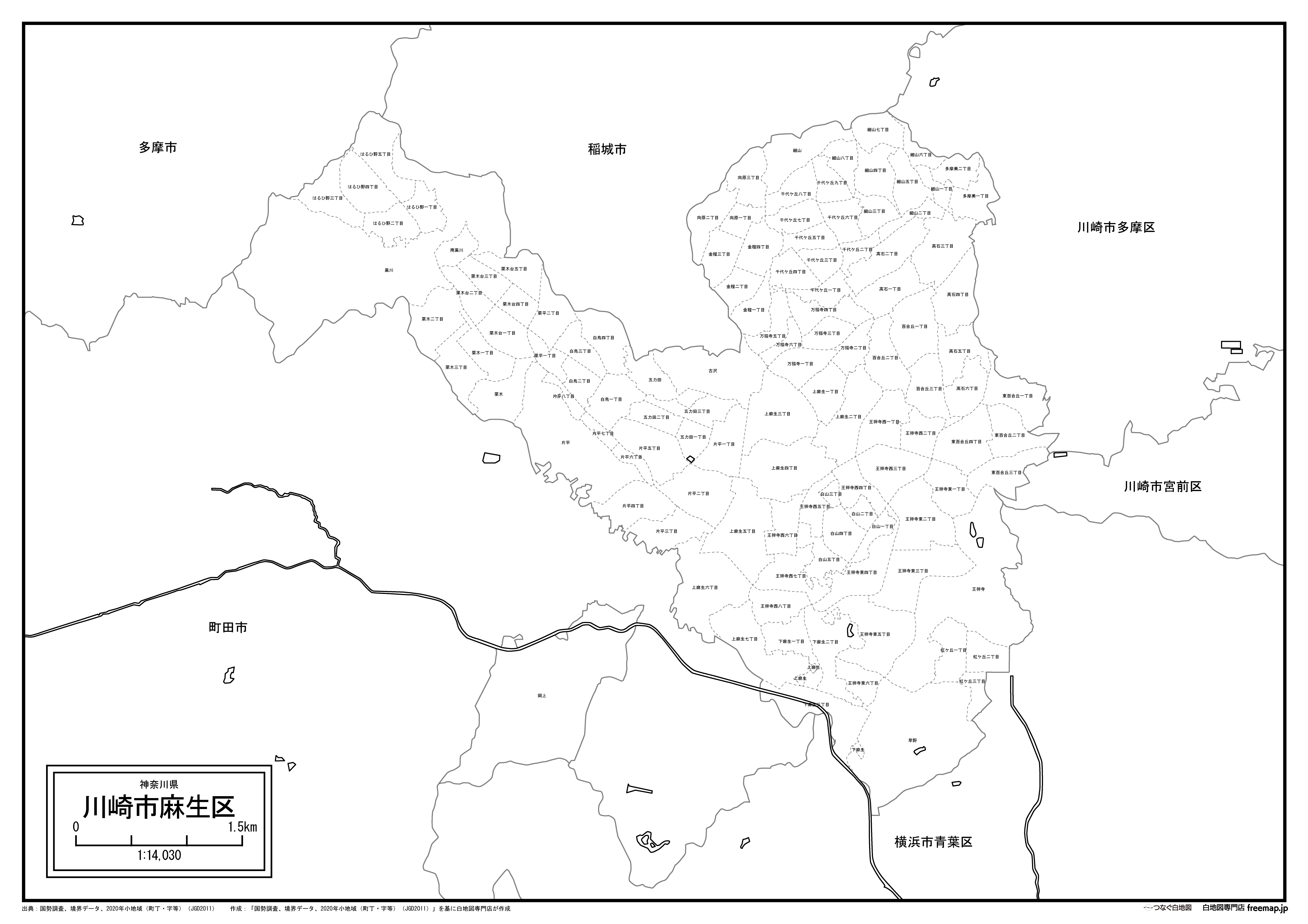 川崎市麻生区の町名(町丁目)も記載した地図データです。