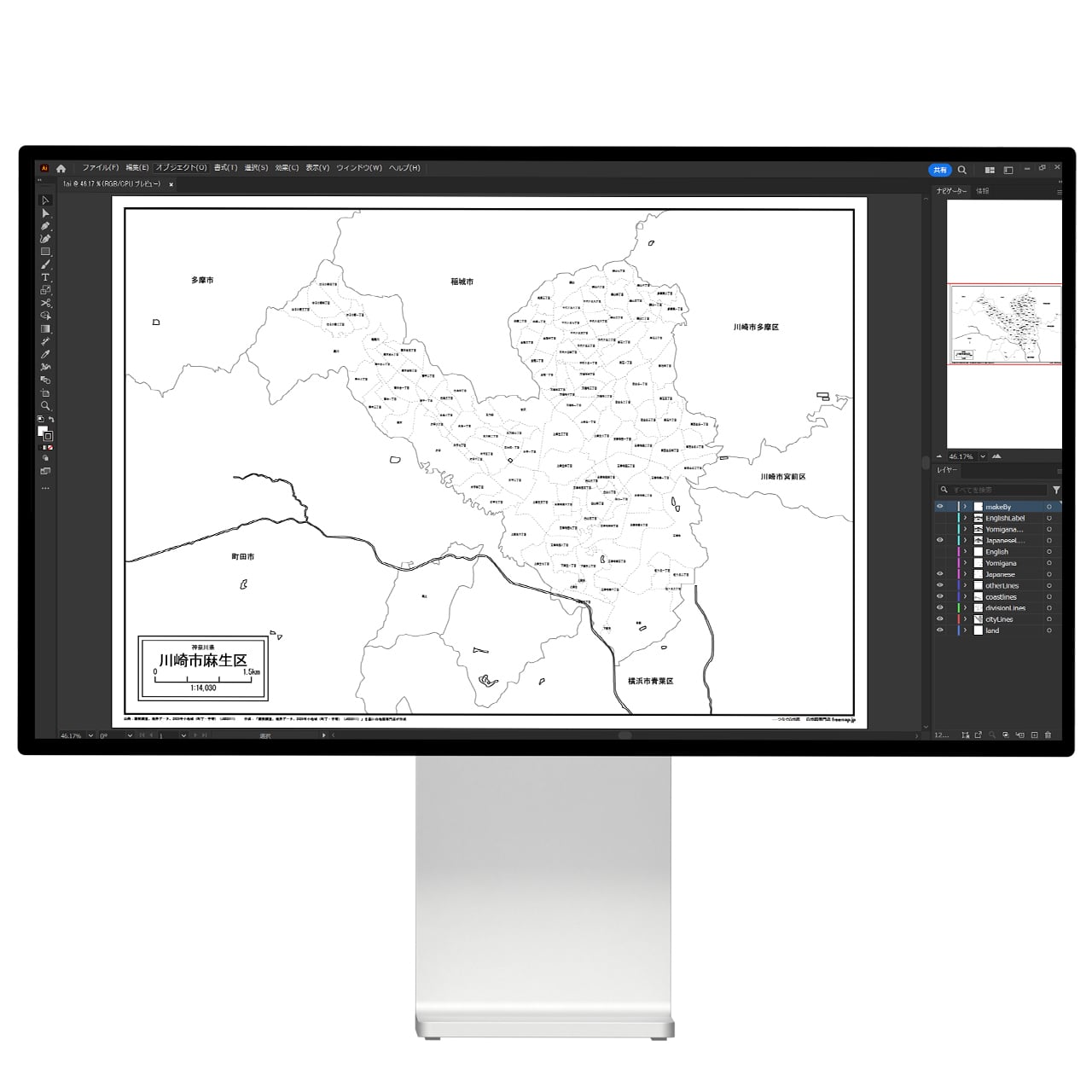 川崎市麻生区:町名も記載の地図データ(PDF・Aiファイル)