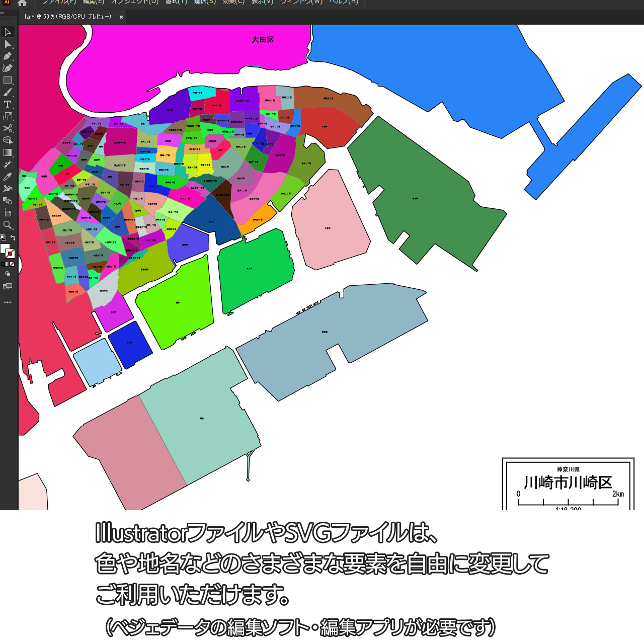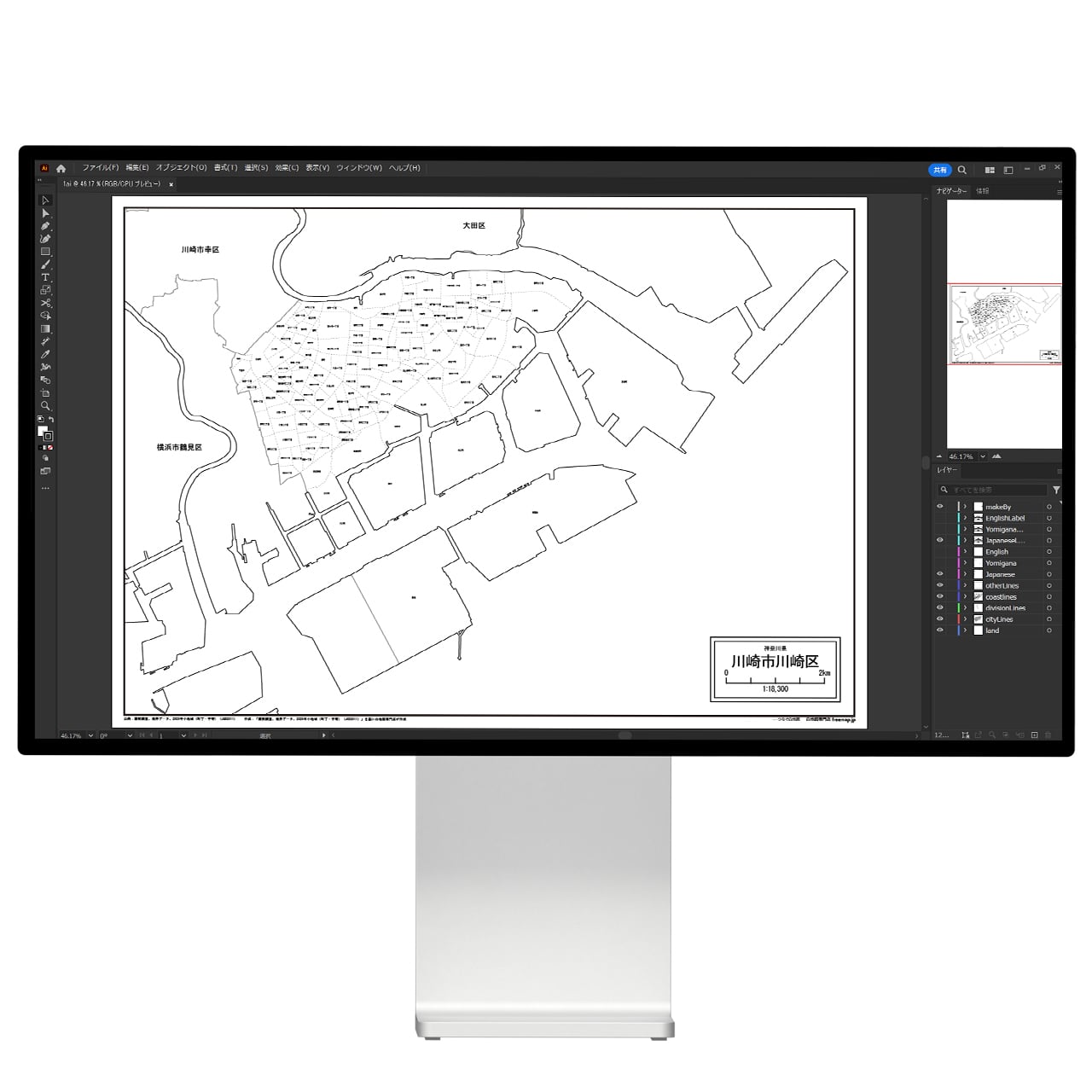 川崎市川崎区:町名も記載の地図データ(PDF・Aiファイル)