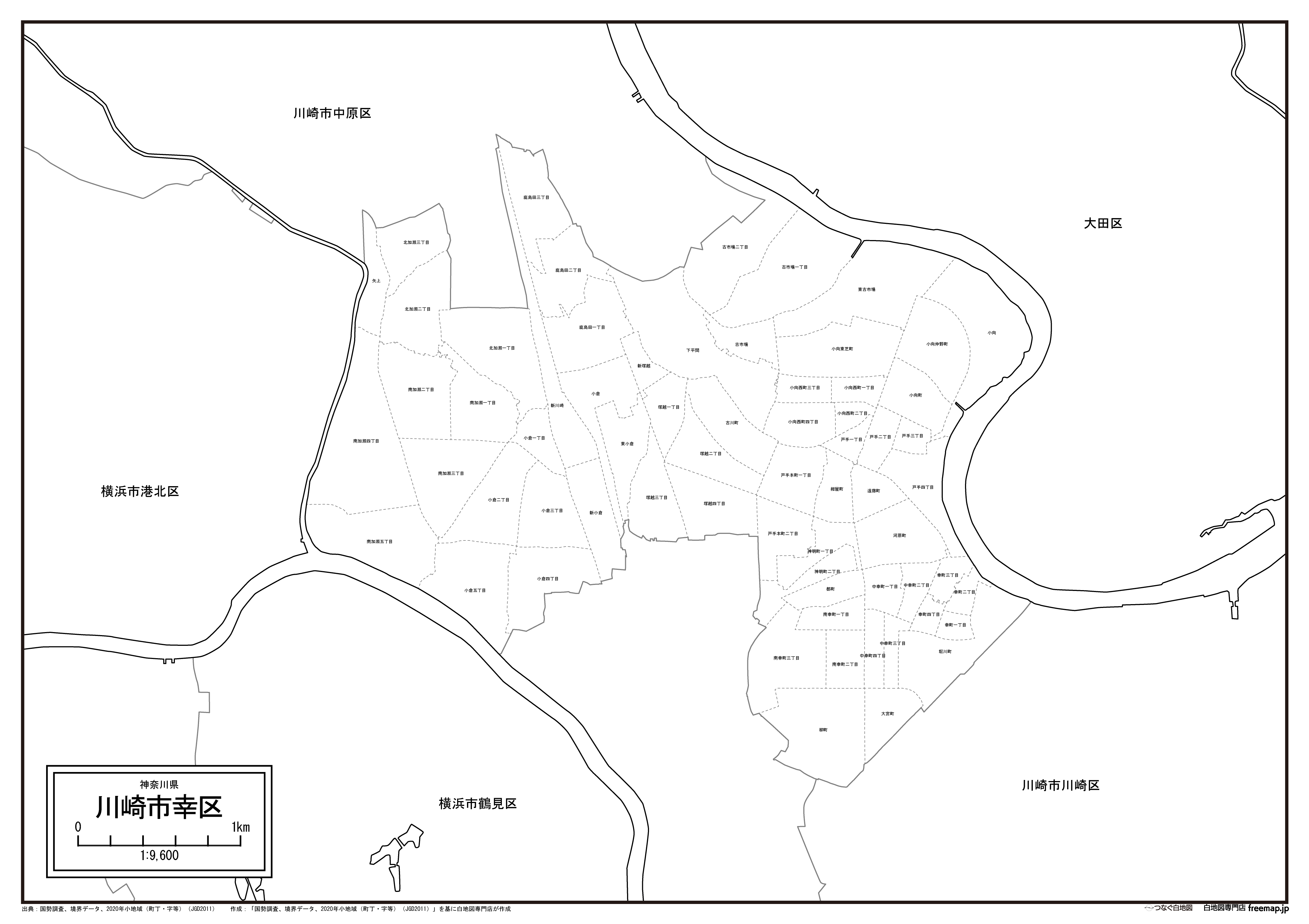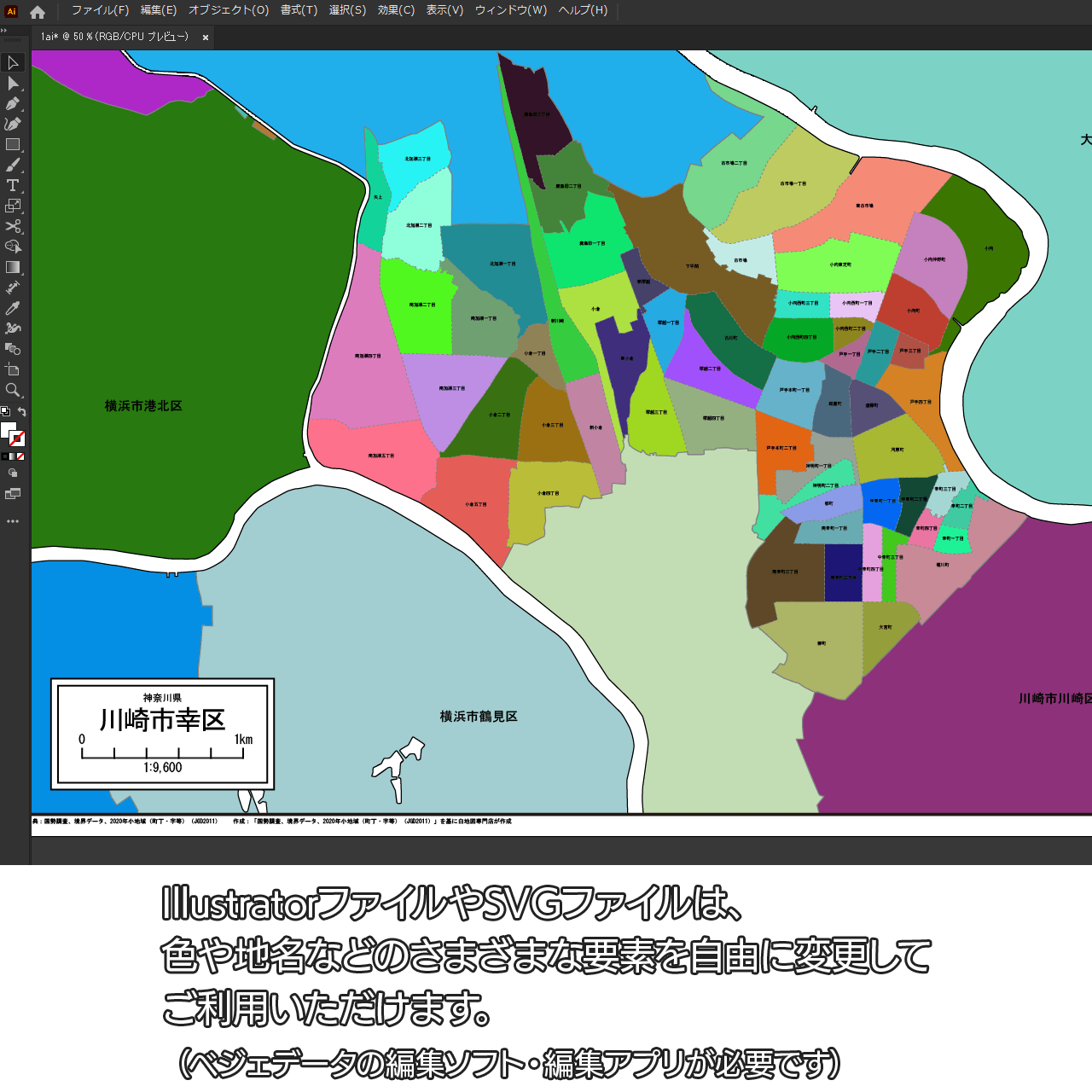 川崎市幸区:町名も記載の地図データ(PDF・Aiファイル)