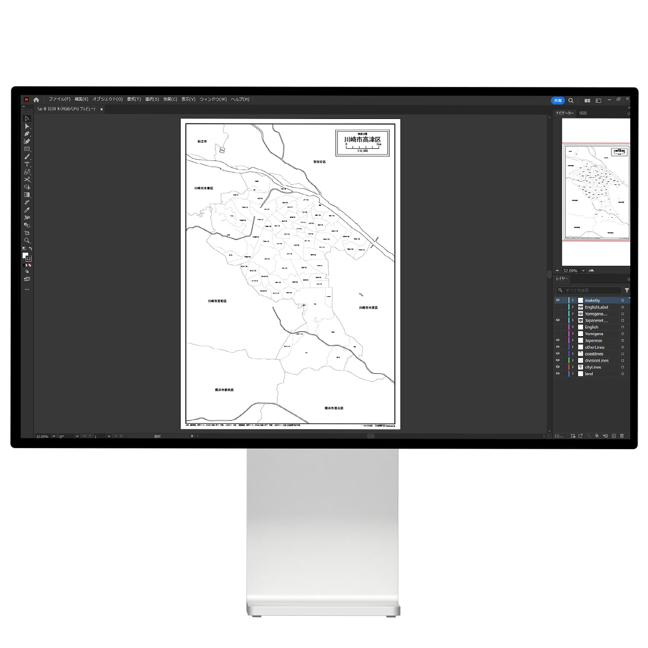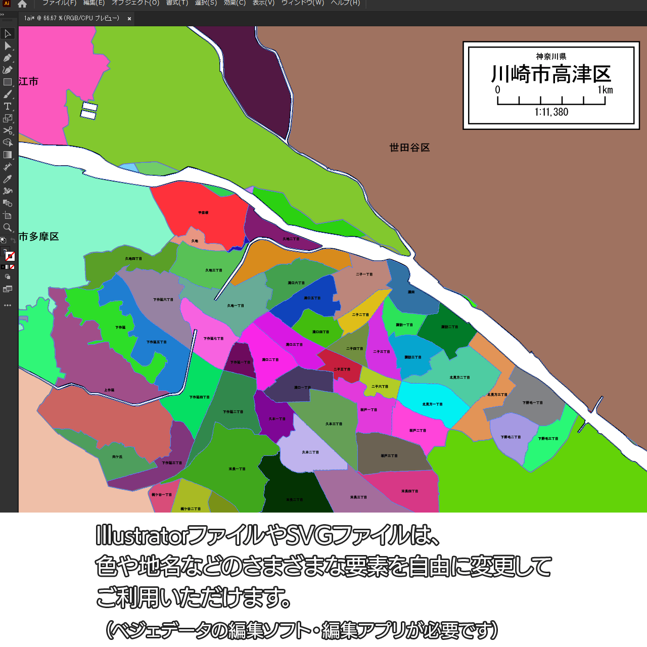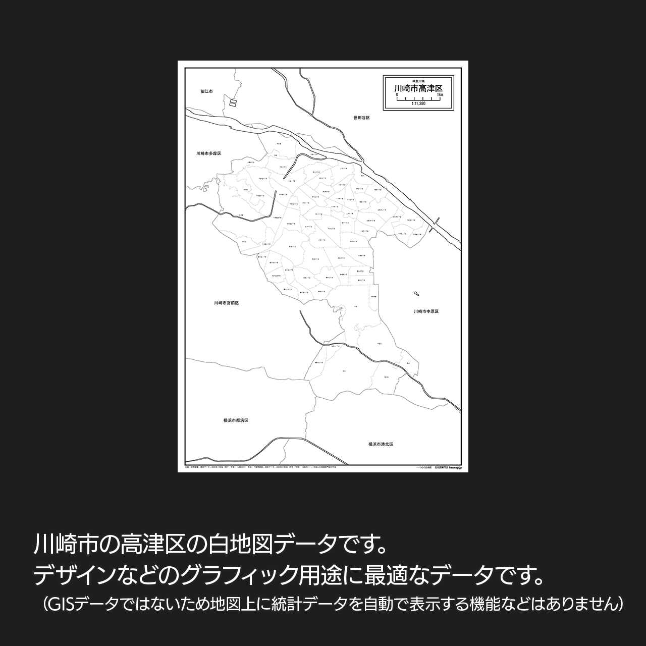 川崎市高津区:町名も記載の地図データ(PDF・Aiファイル)