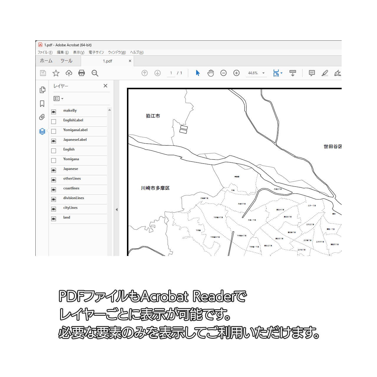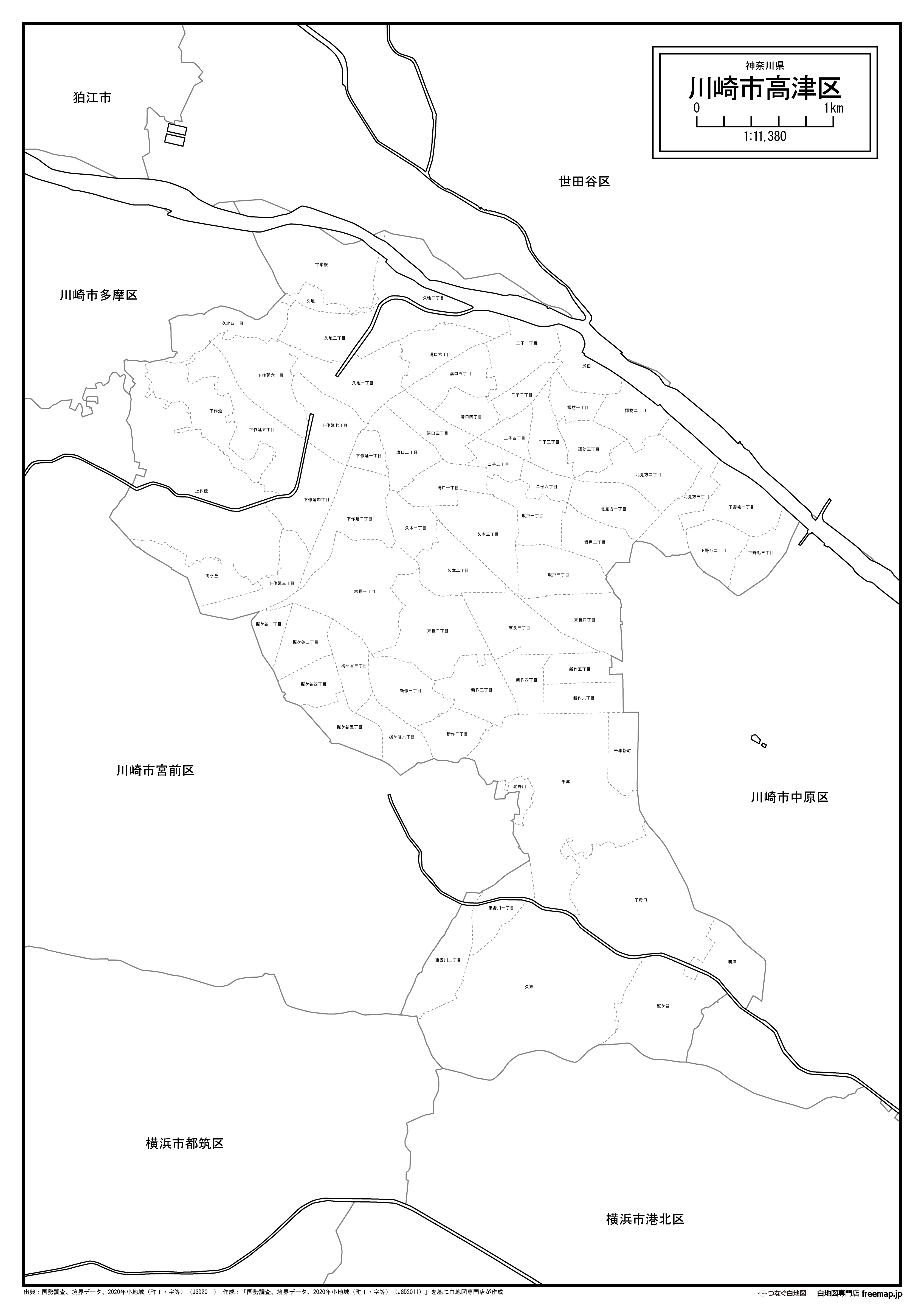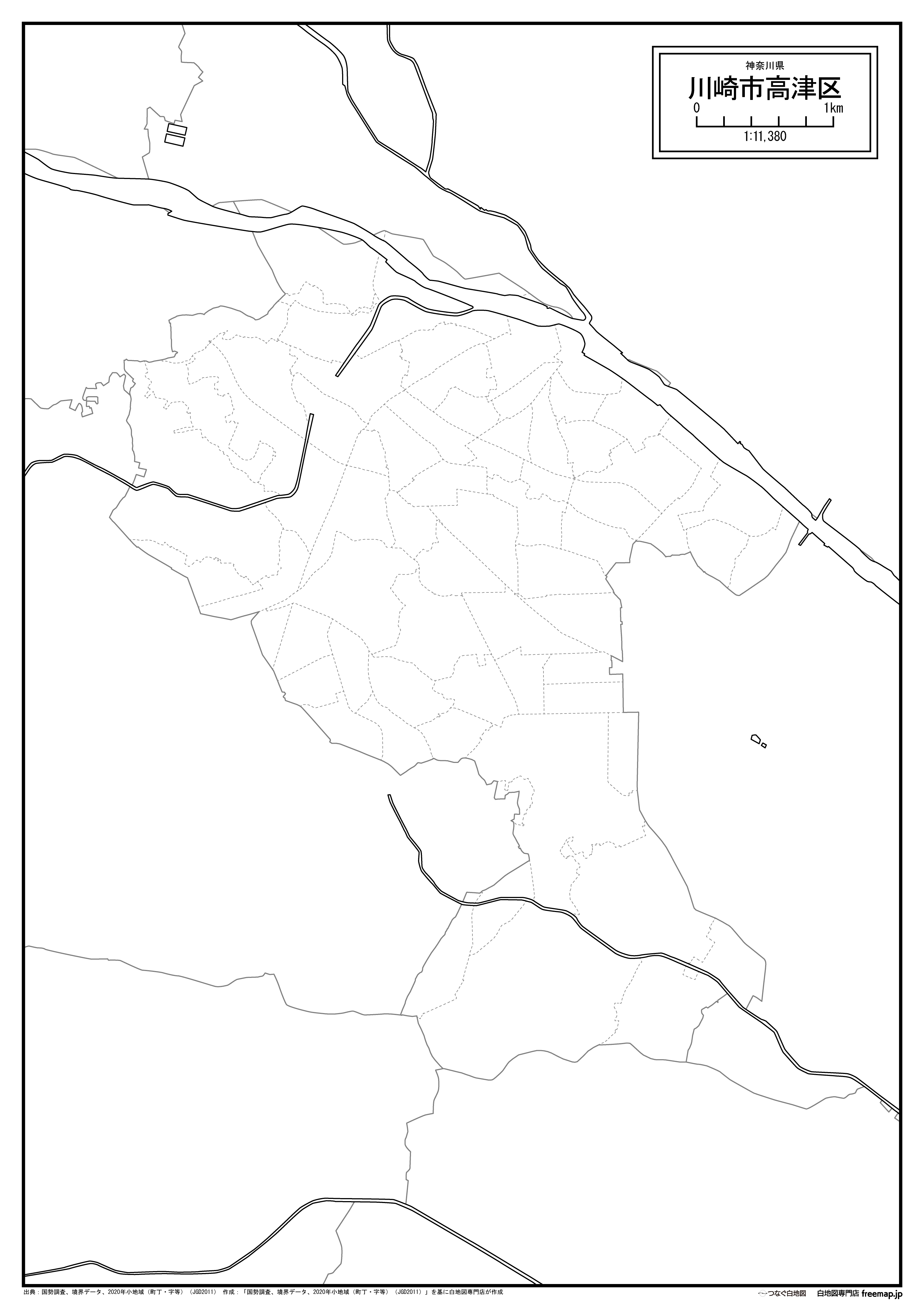 川崎市高津区:町名も記載の地図データ(PDF・Aiファイル)