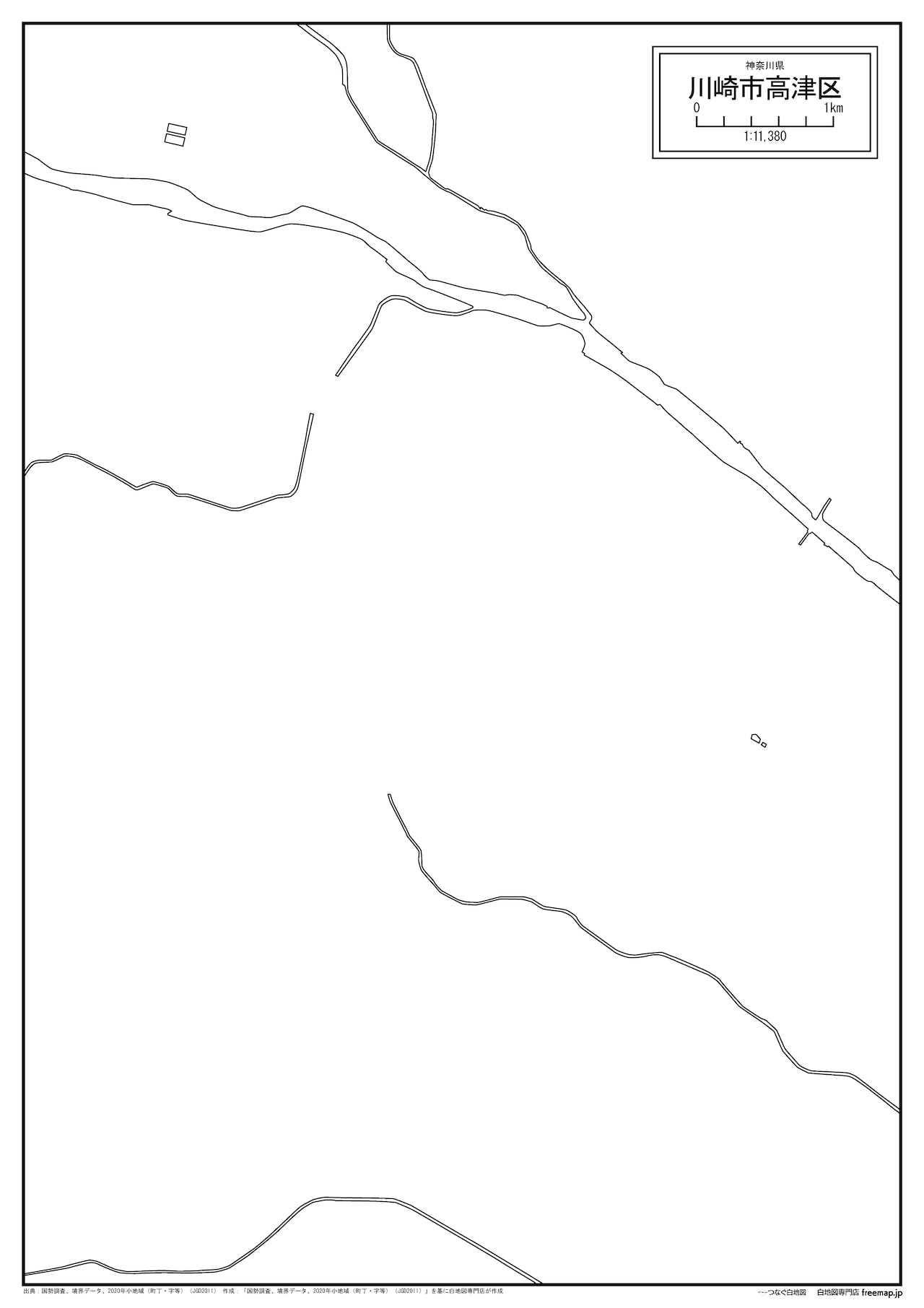 川崎市高津区の町名(町丁目)も記載した地図データです。