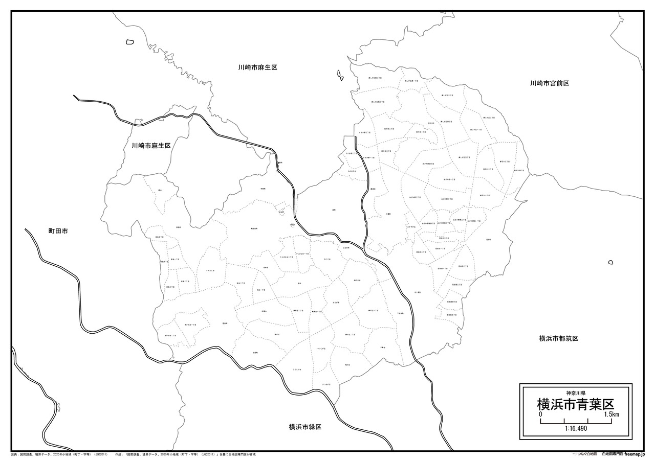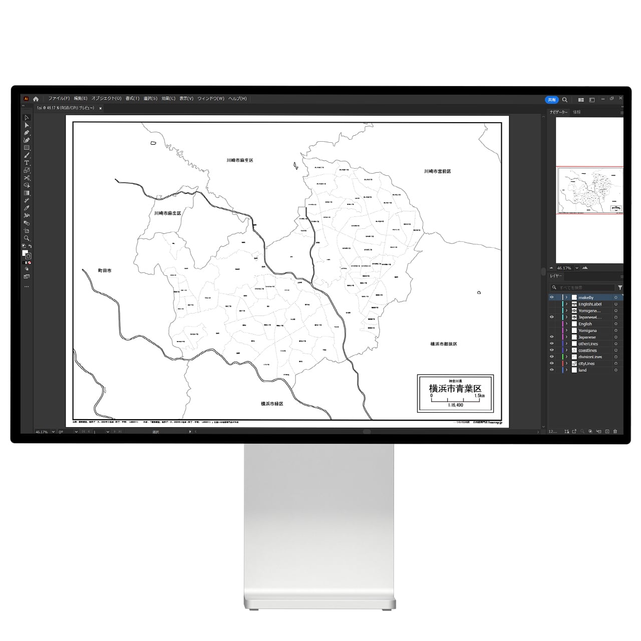 横浜市青葉区:町名も記載の地図データ(PDF・Aiファイル)