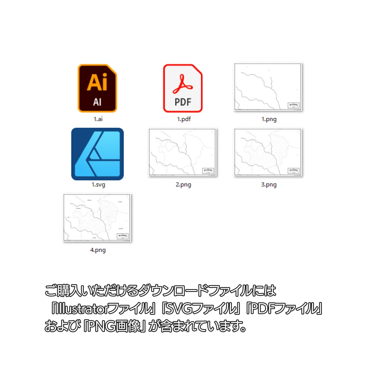 AiファイルはAdobe Illustratorで再編集可能な白地図データです。