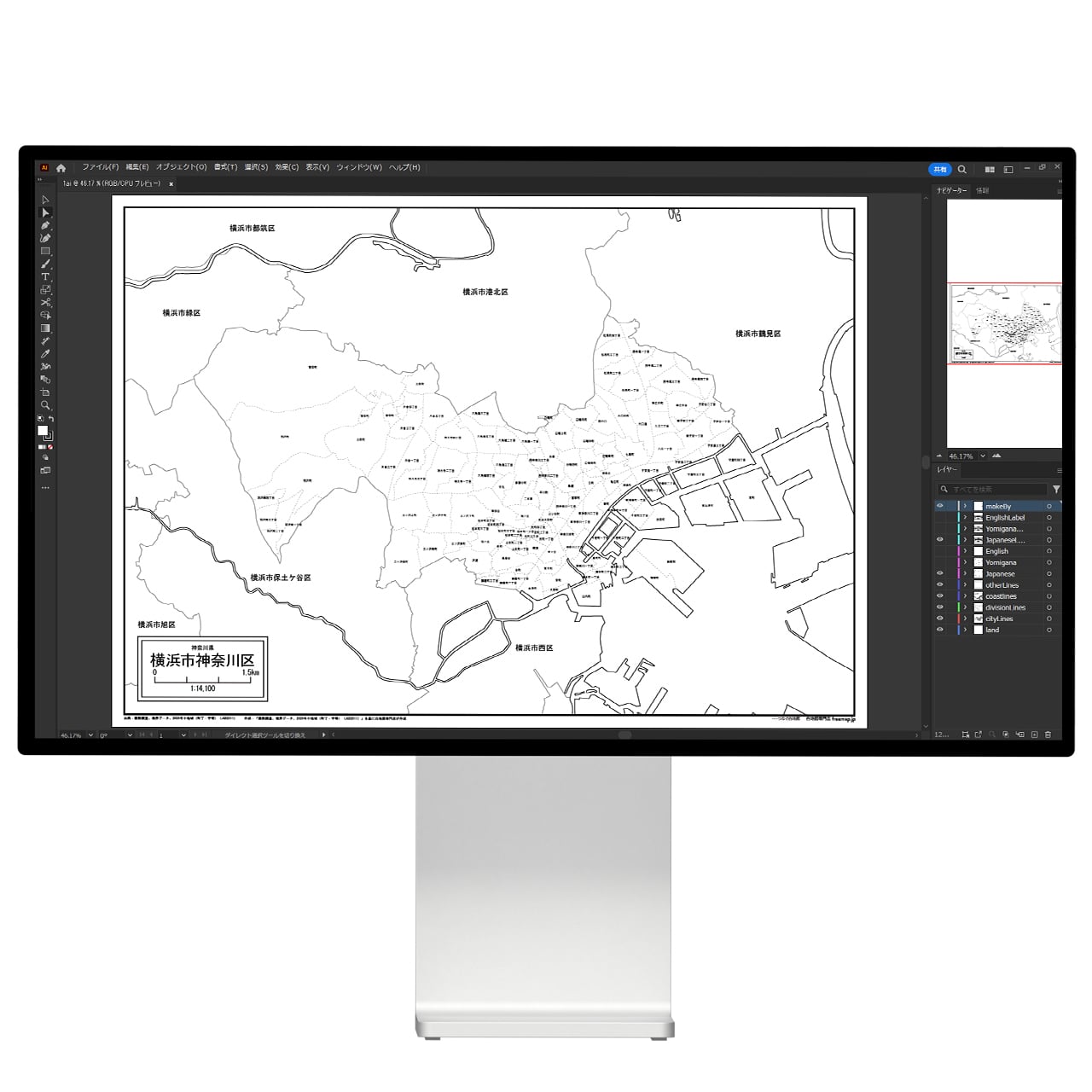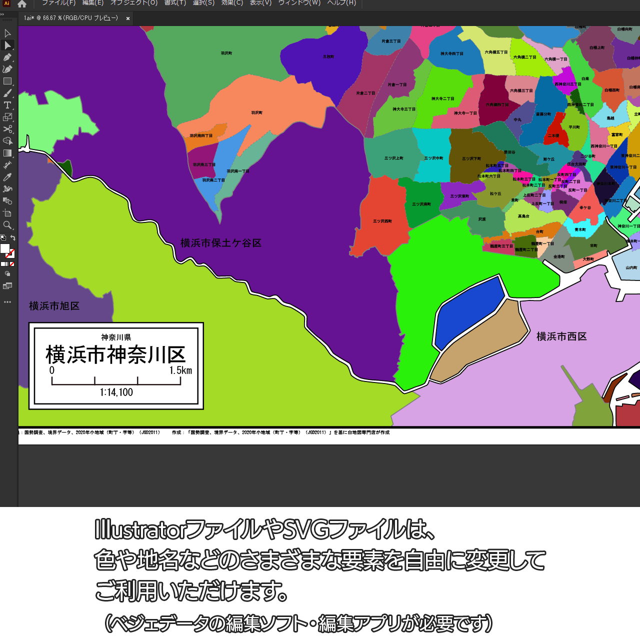 横浜市神奈川区:町名も記載の地図データ(PDF・Aiファイル)