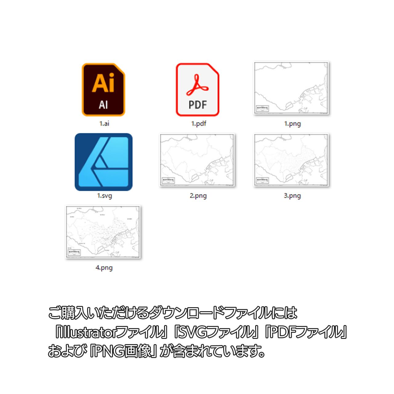 PDF・Ai・SVG形式がセットでご利用いただけます。