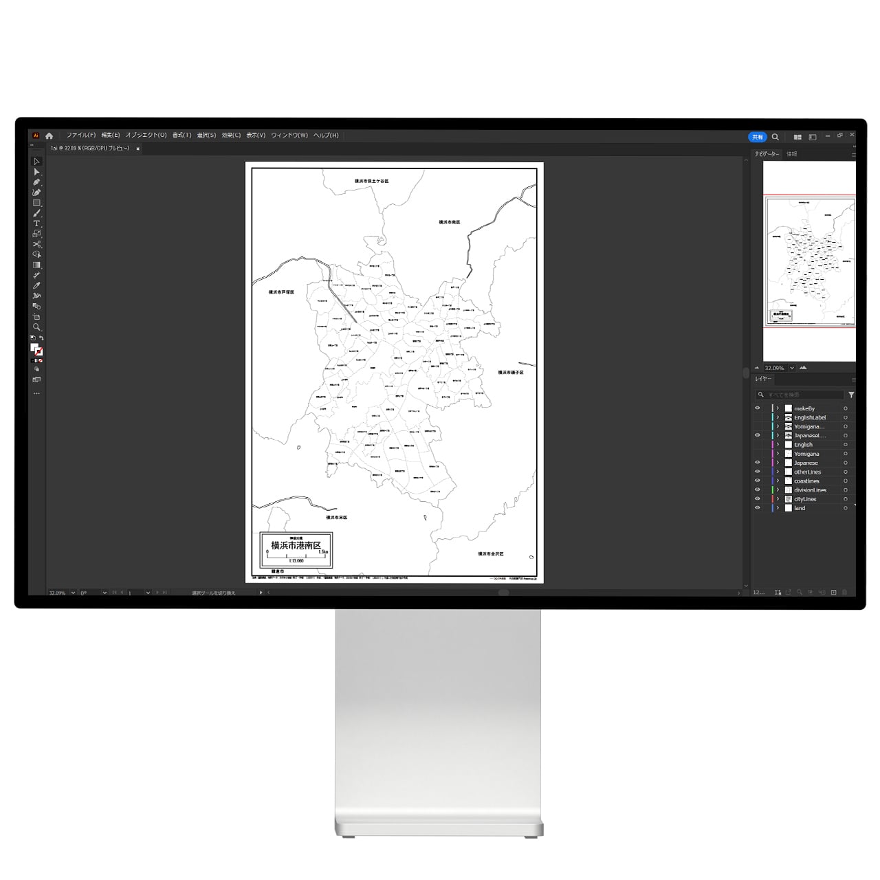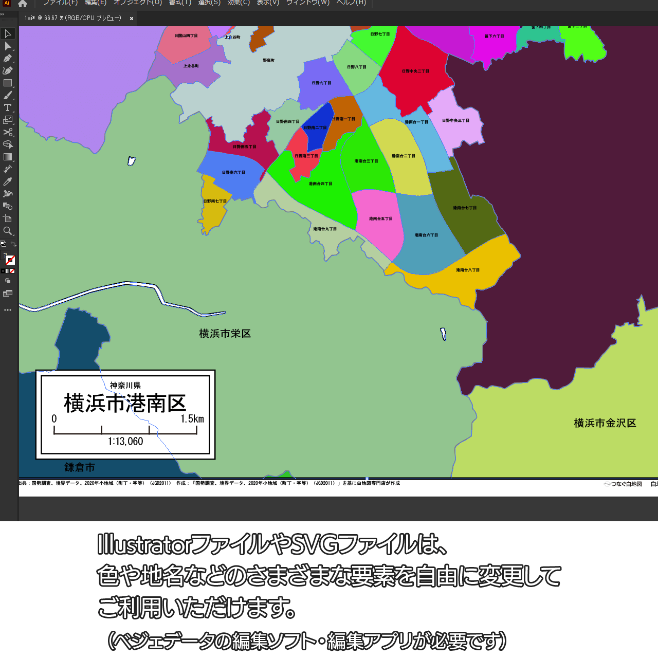 横浜市港南区:町名も記載の地図データ(PDF・Aiファイル)