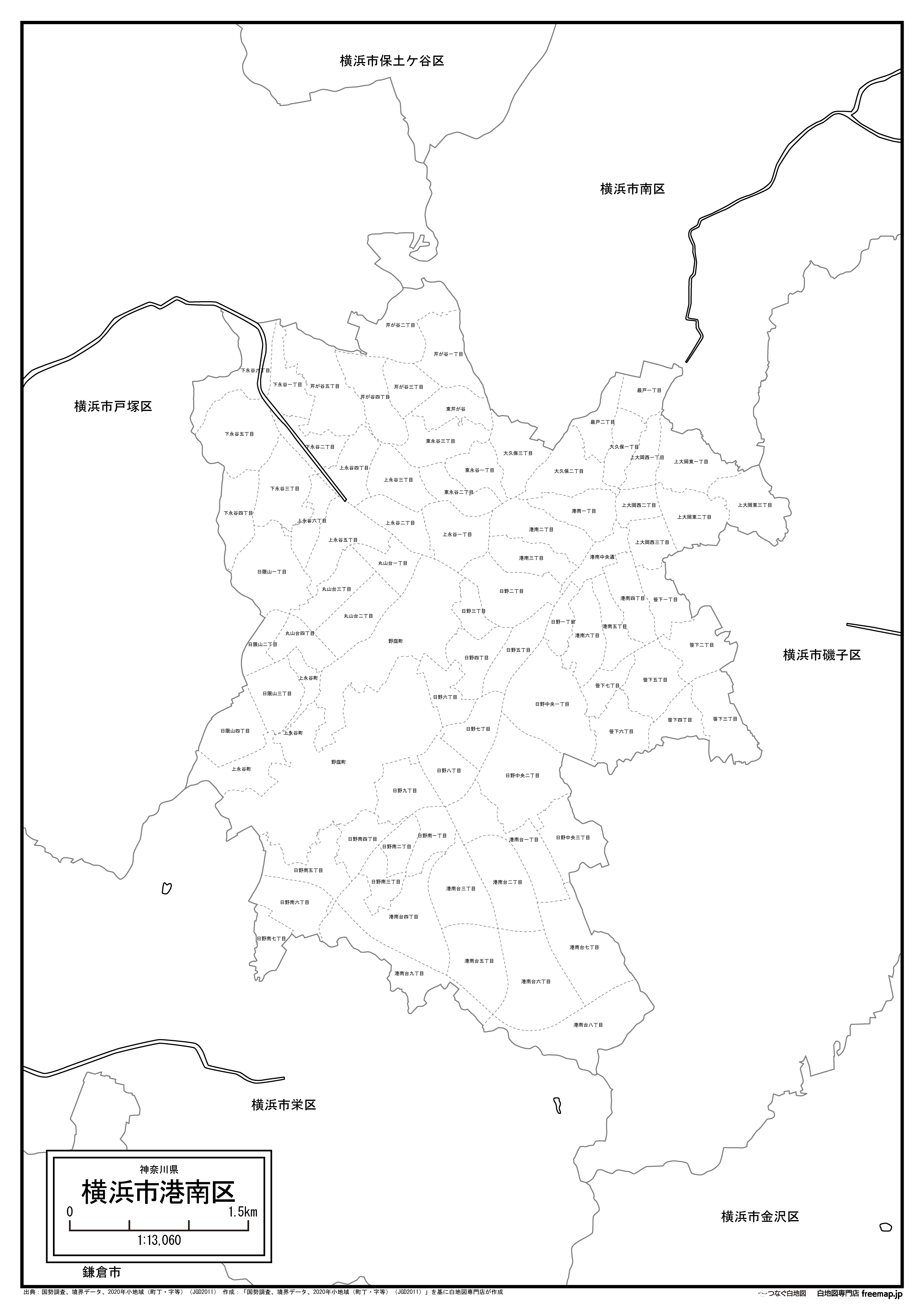 横浜市港南区の町名(町丁目)も記載した地図データです。