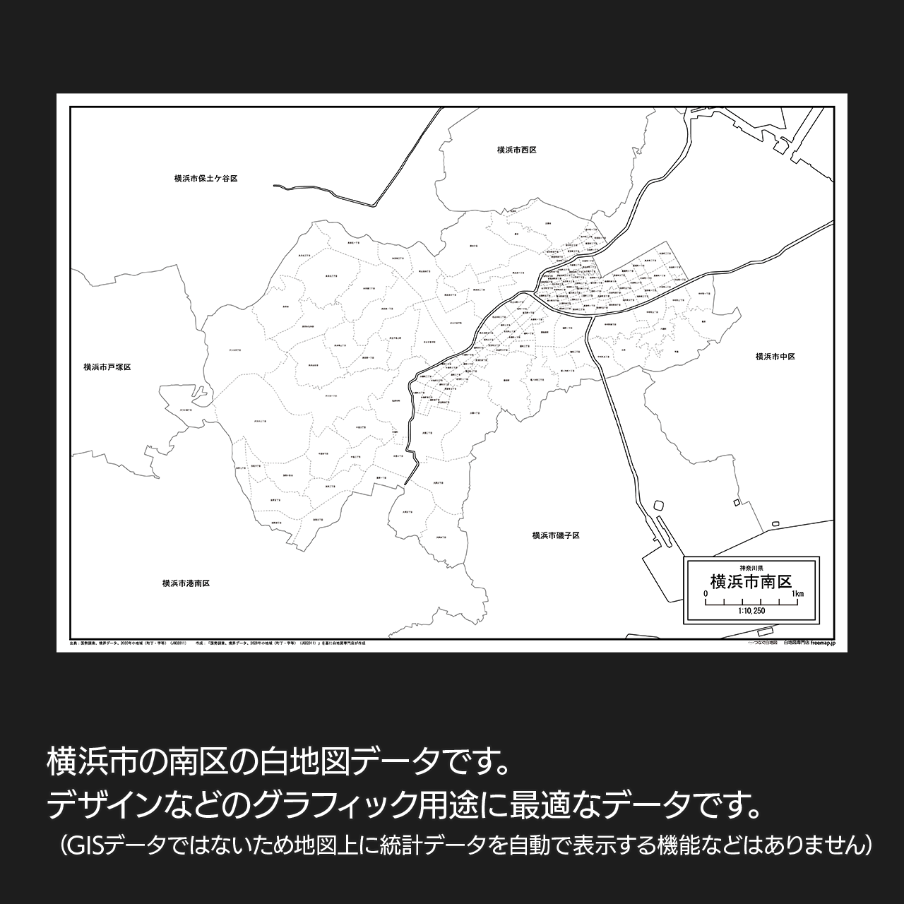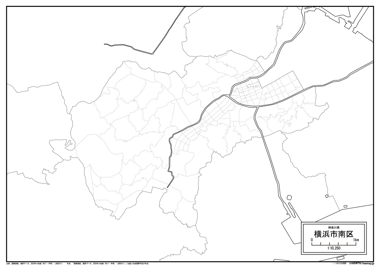 横浜市南区の町名(町丁目)も記載した地図データです。
