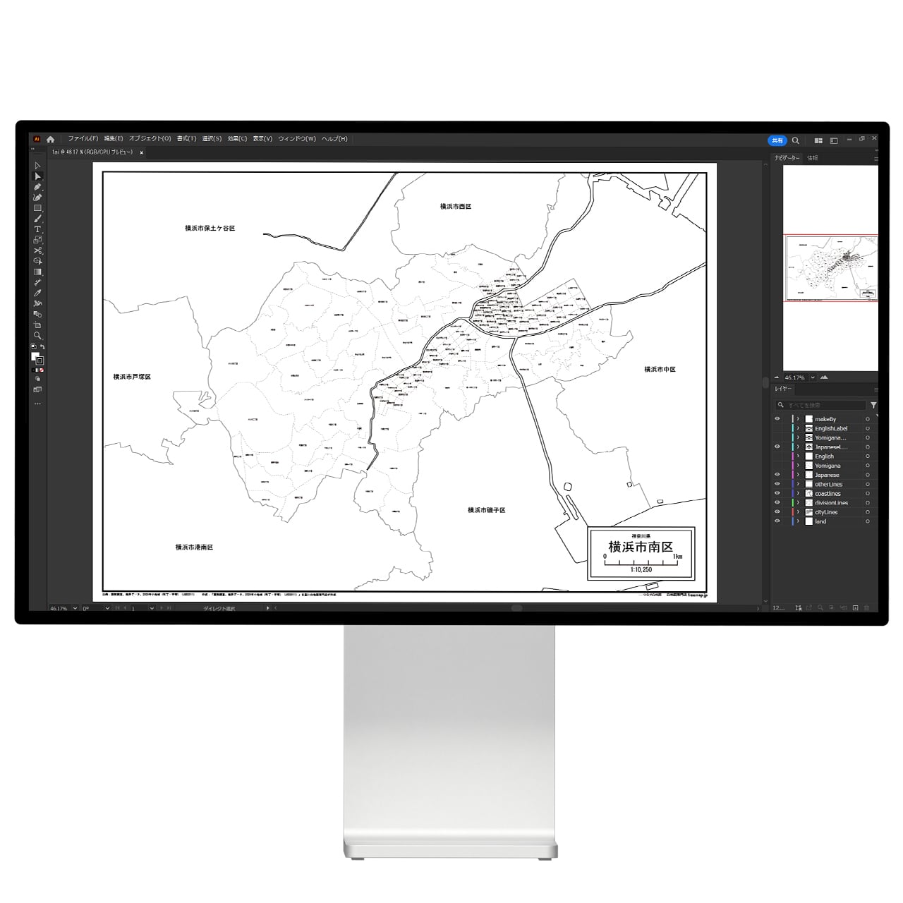 横浜市南区:町名も記載の地図データ(PDF・Aiファイル)