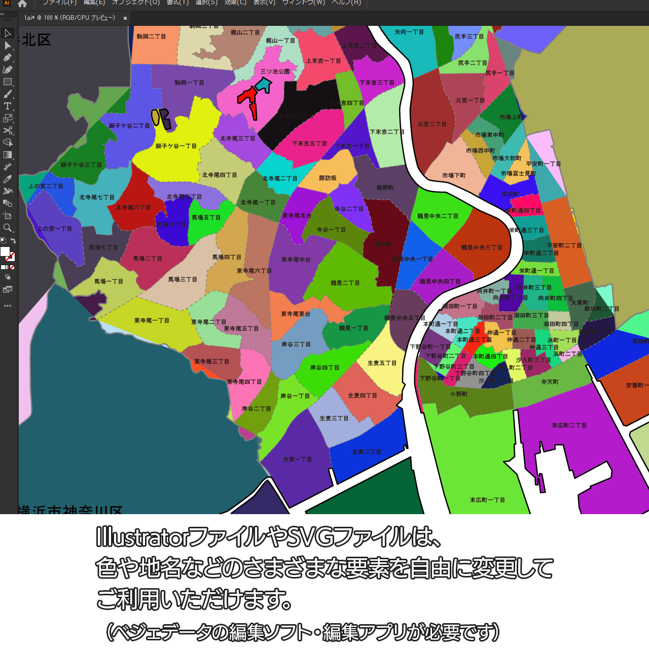 横浜市鶴見区:町名も記載の地図データ(PDF・Aiファイル)