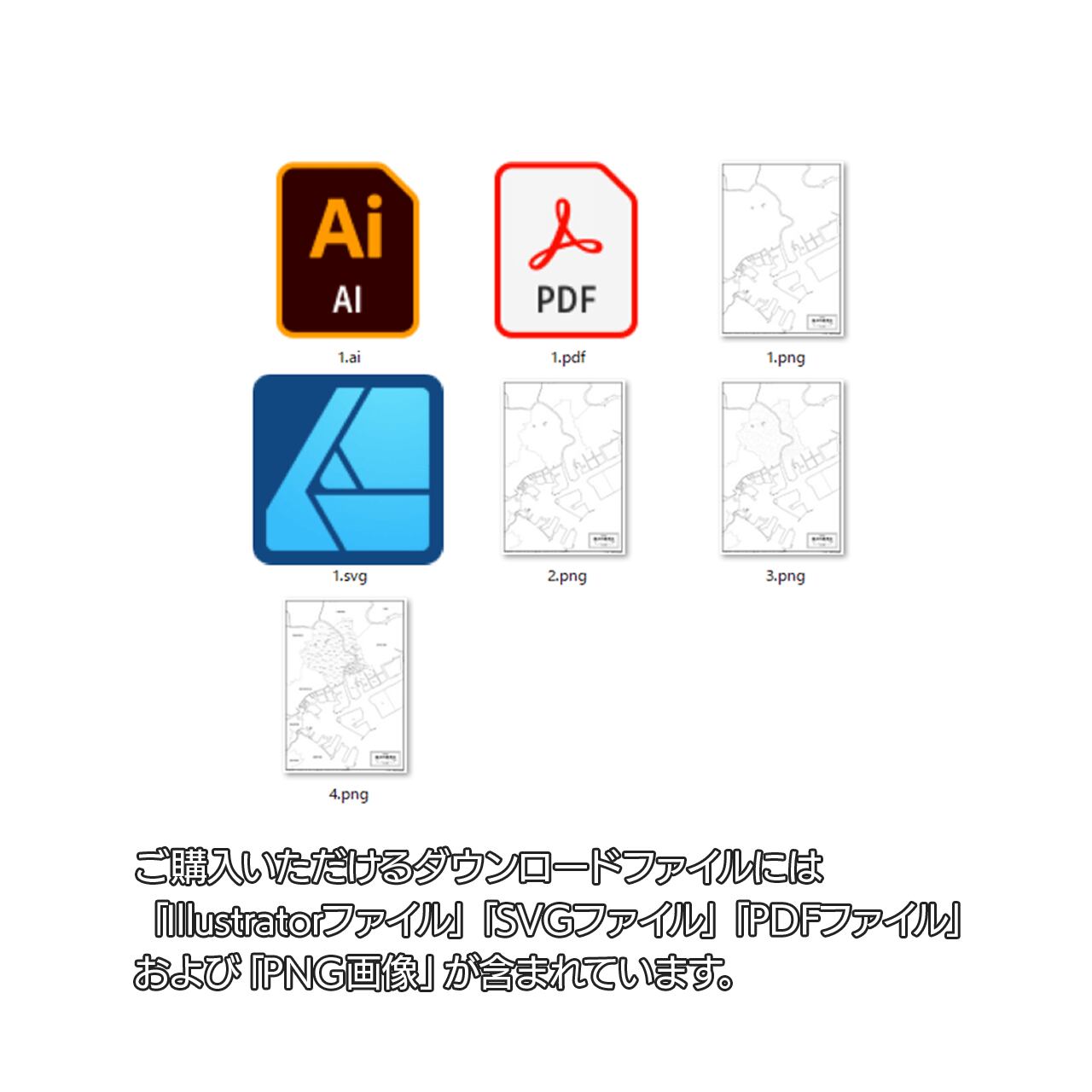 AiファイルはAdobe Illustratorで再編集可能な白地図データです。