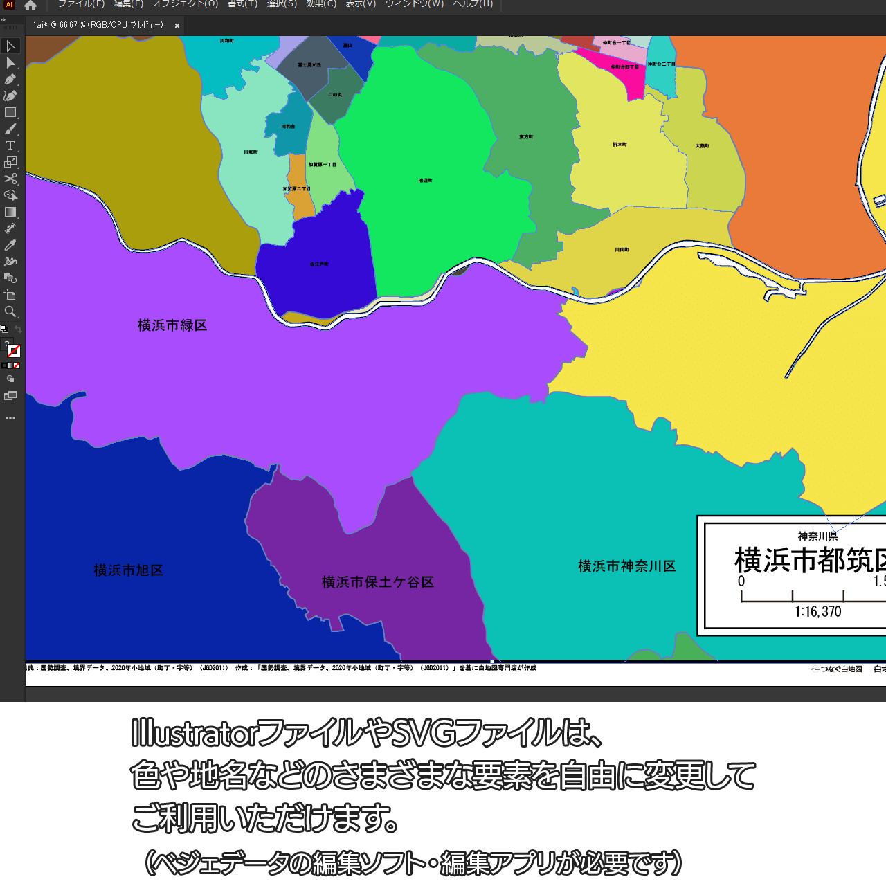 横浜市都筑区:町名も記載の地図データ(PDF・Aiファイル)