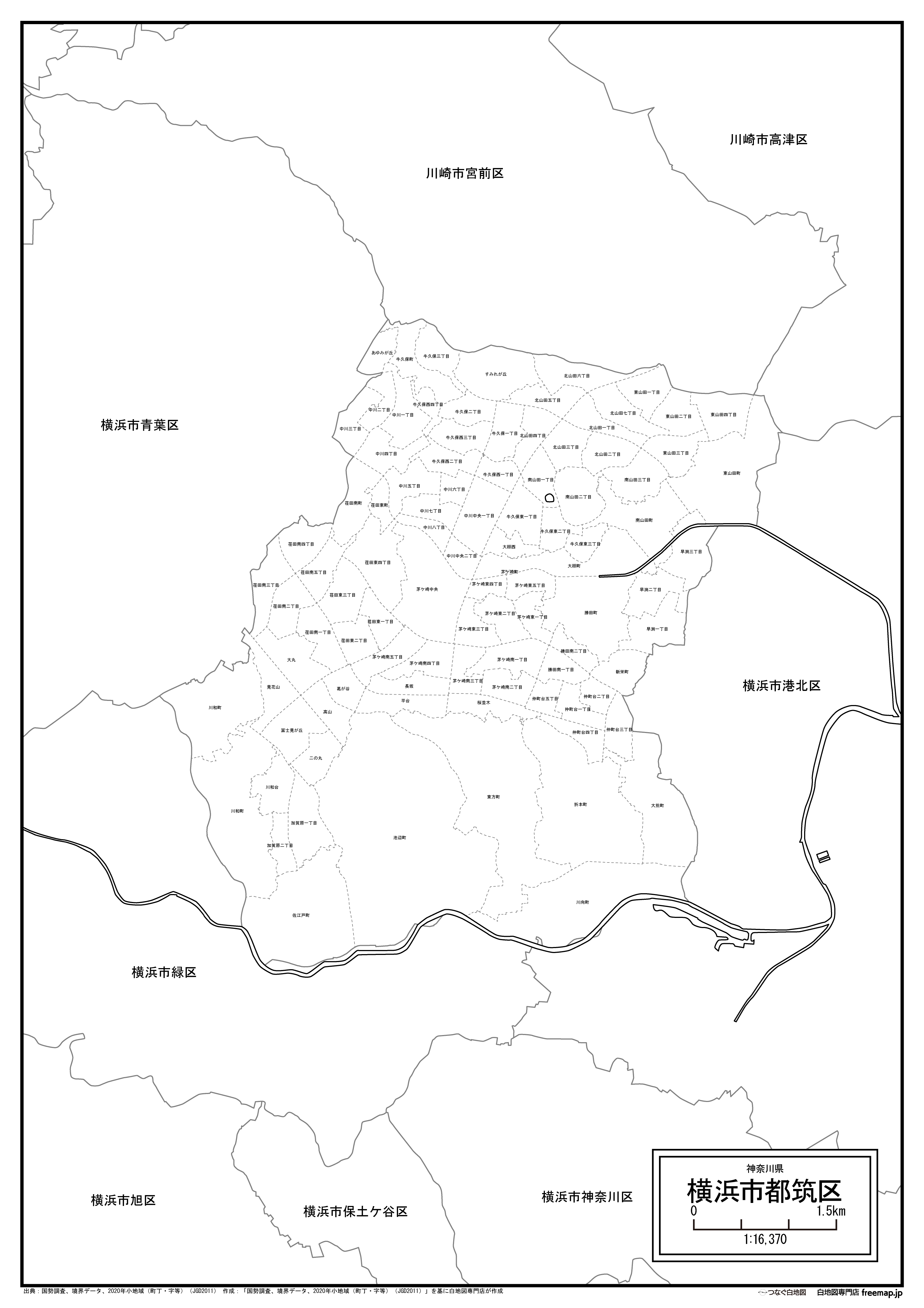 横浜市都筑区の町名(町丁目)も記載した地図データです。