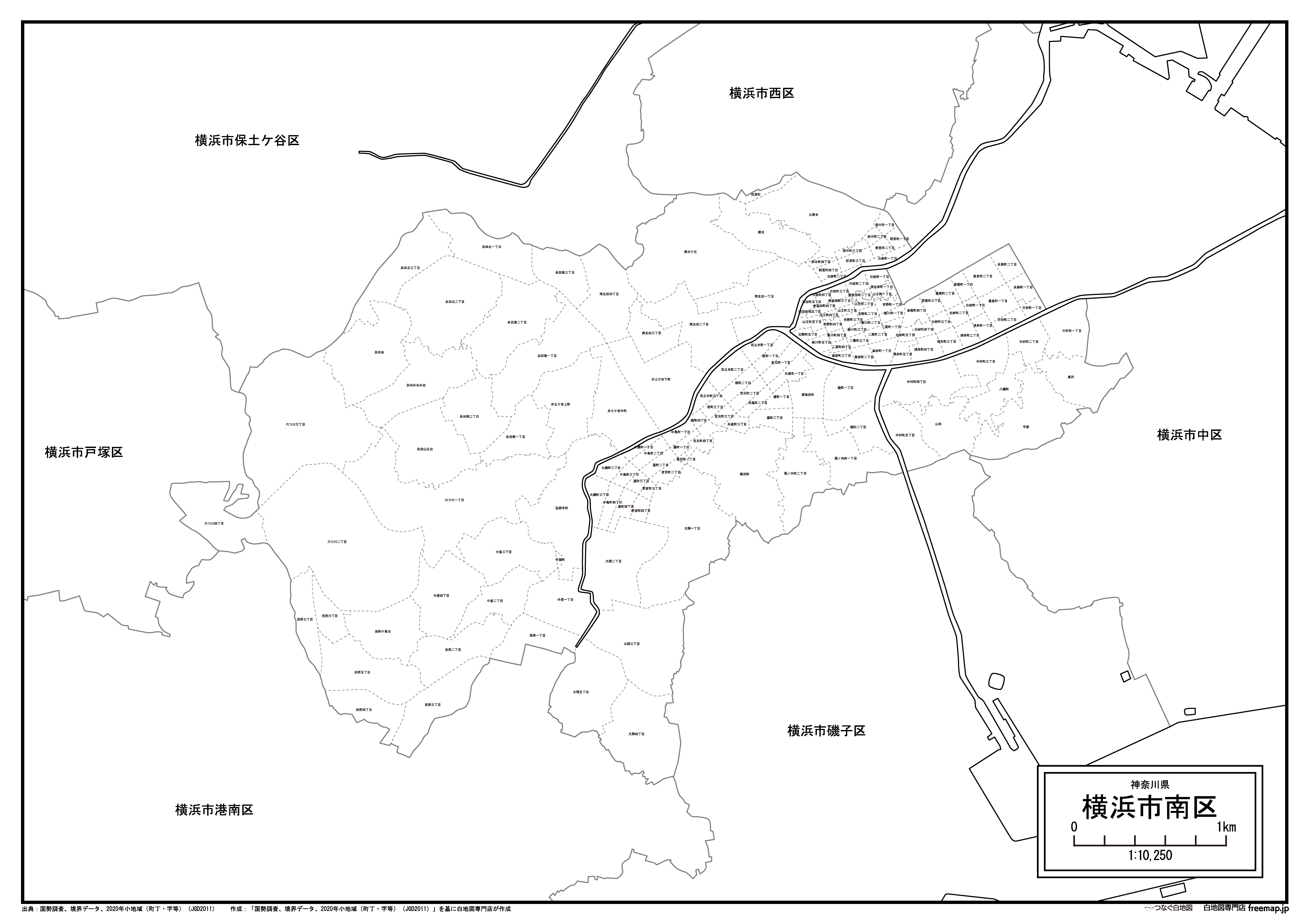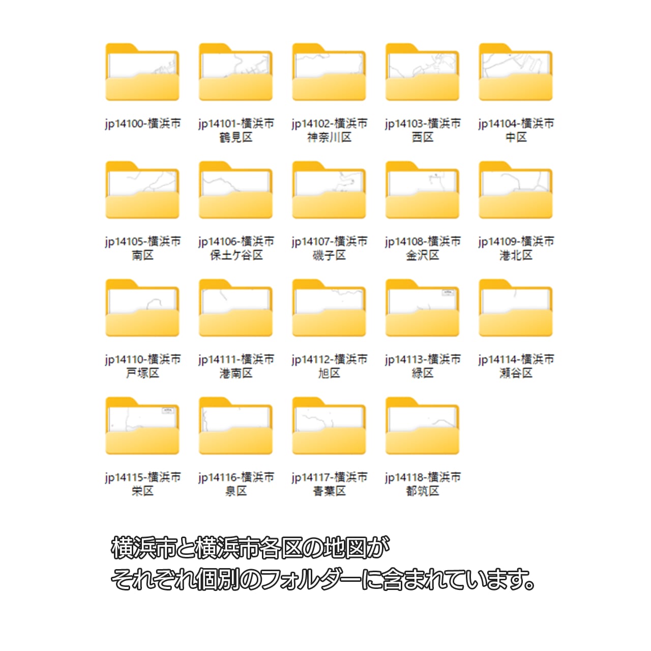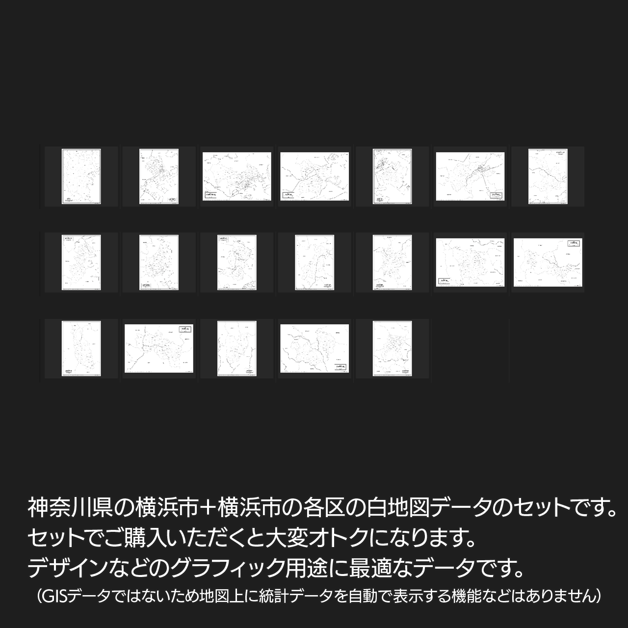 神奈川県横浜市全体の白地図と各18区のセット(Aiファイル)