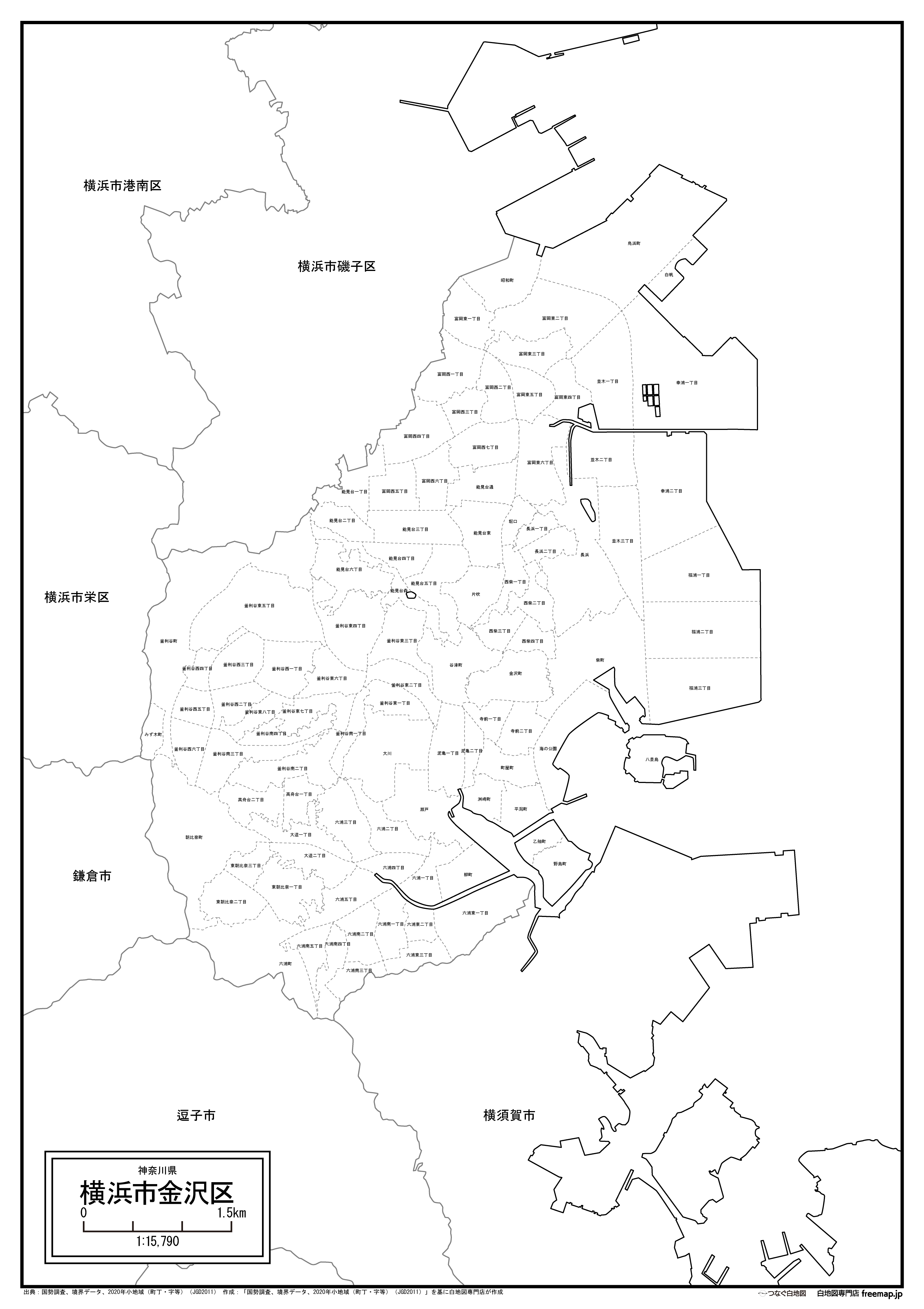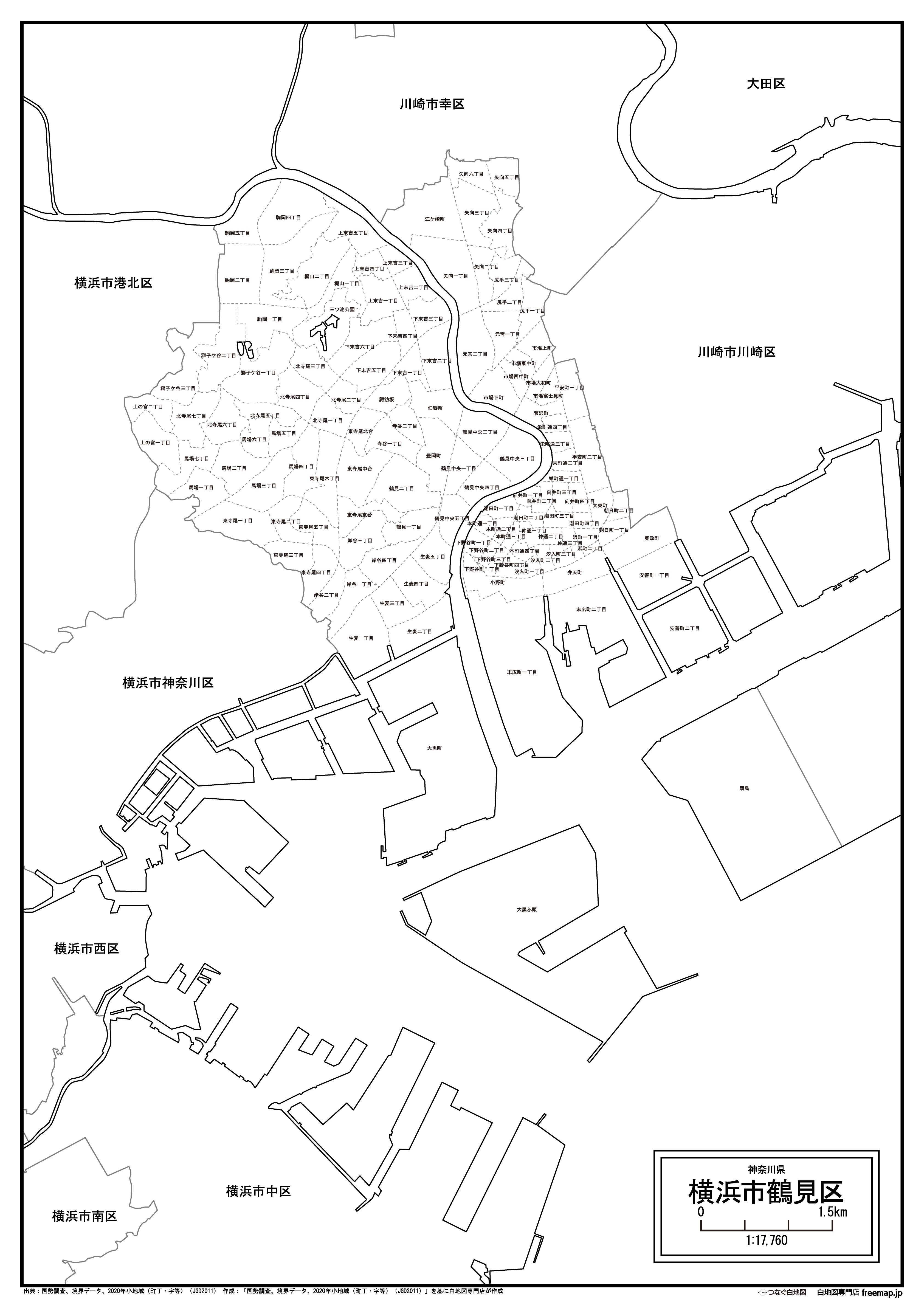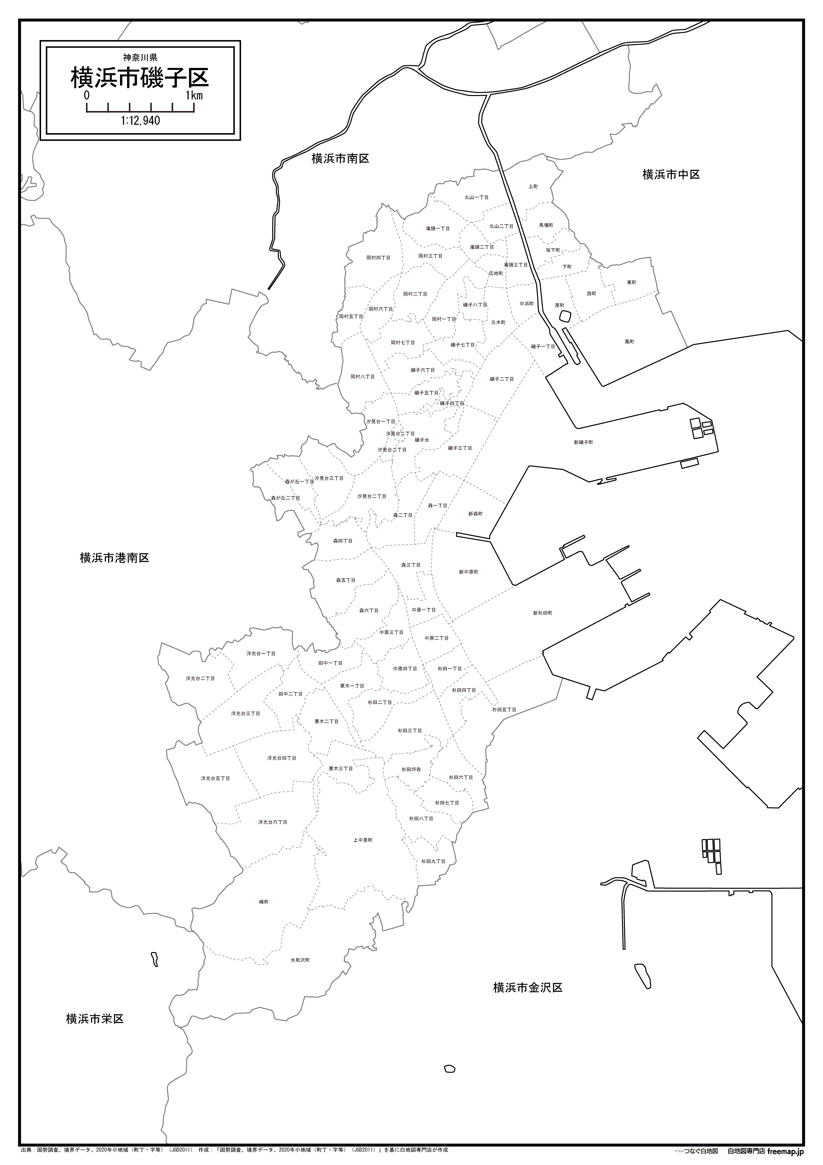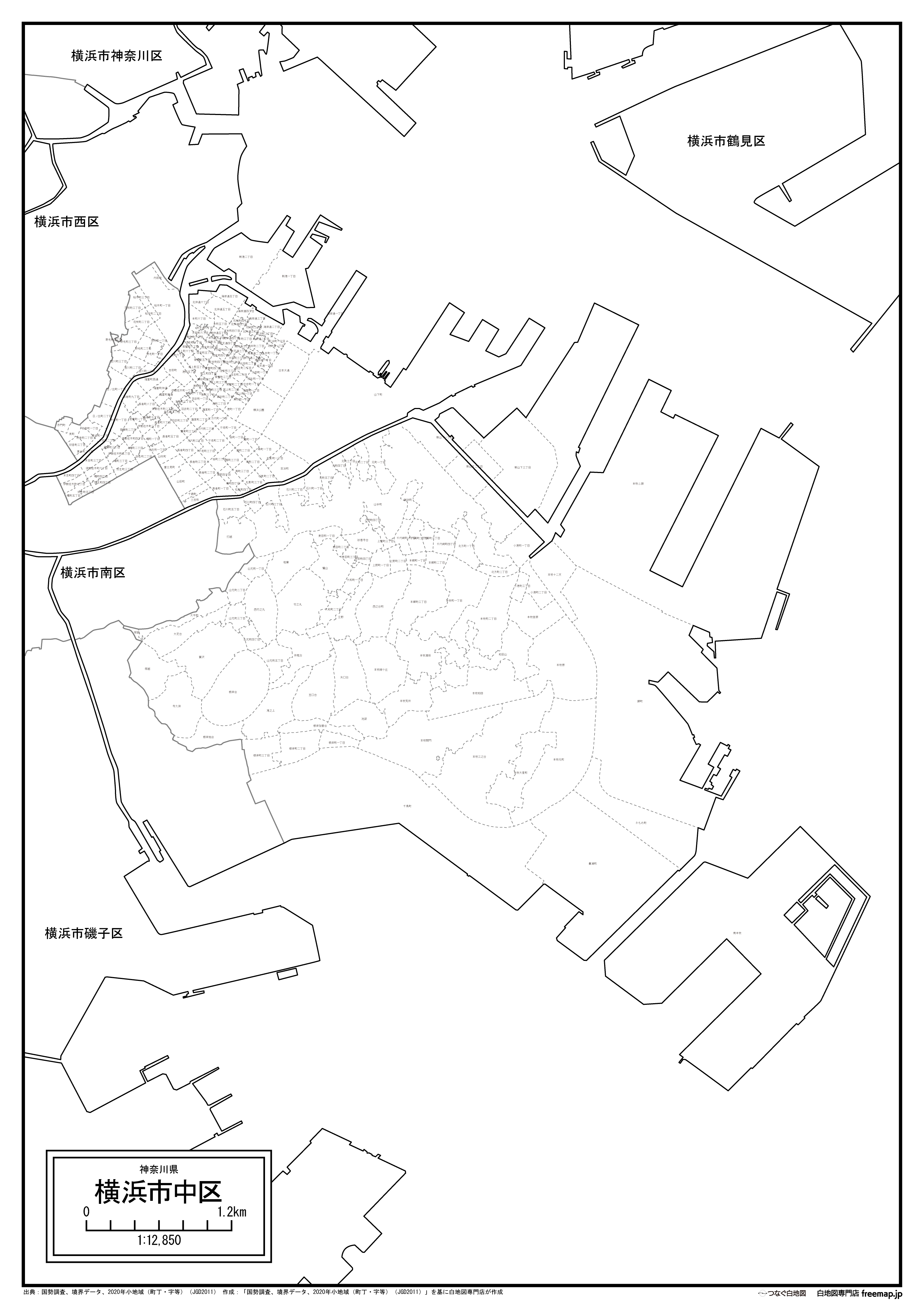 神奈川県横浜市全体の白地図と各18区のセット(Aiファイル)