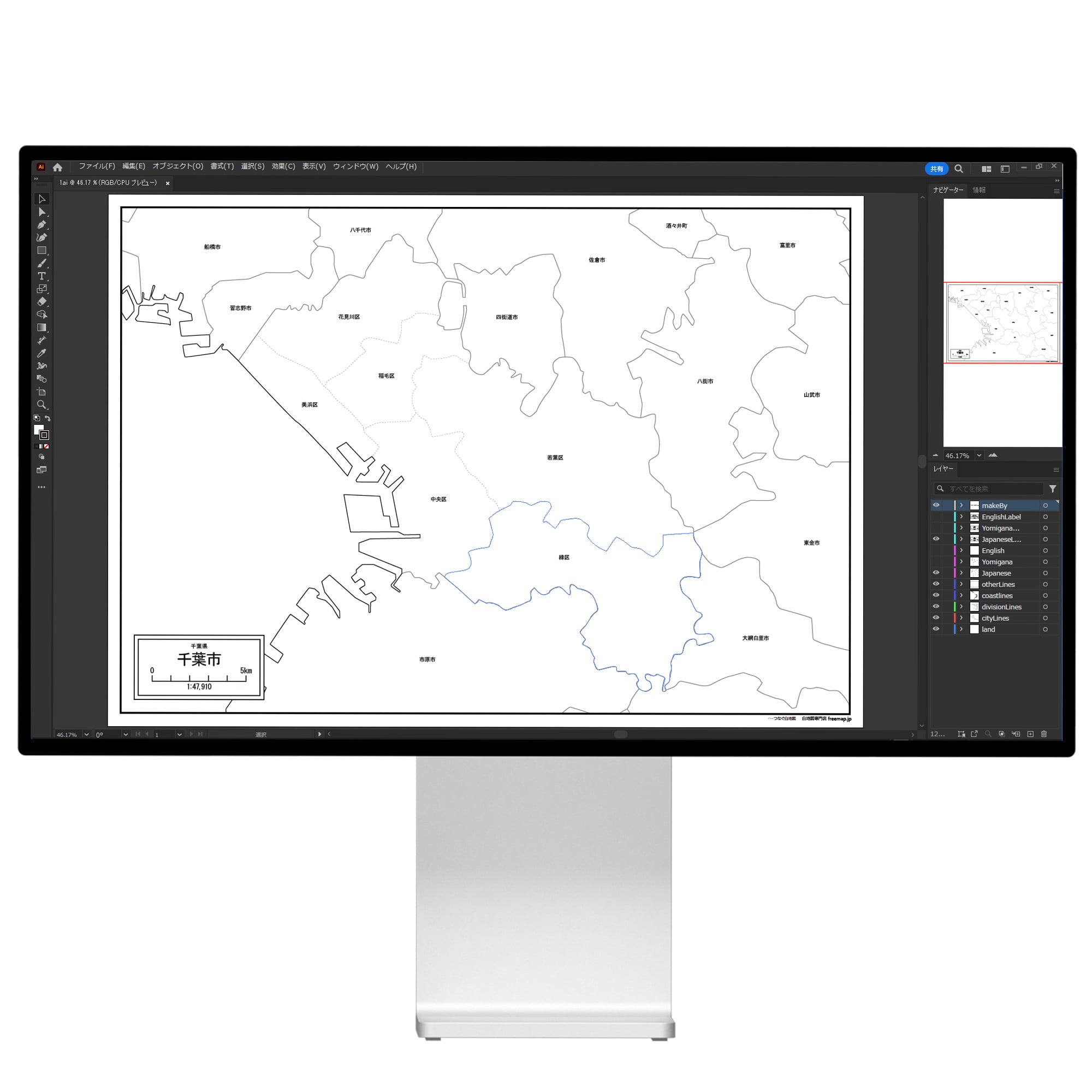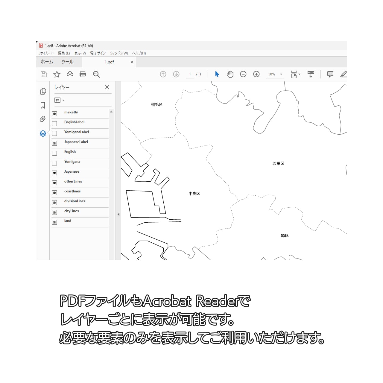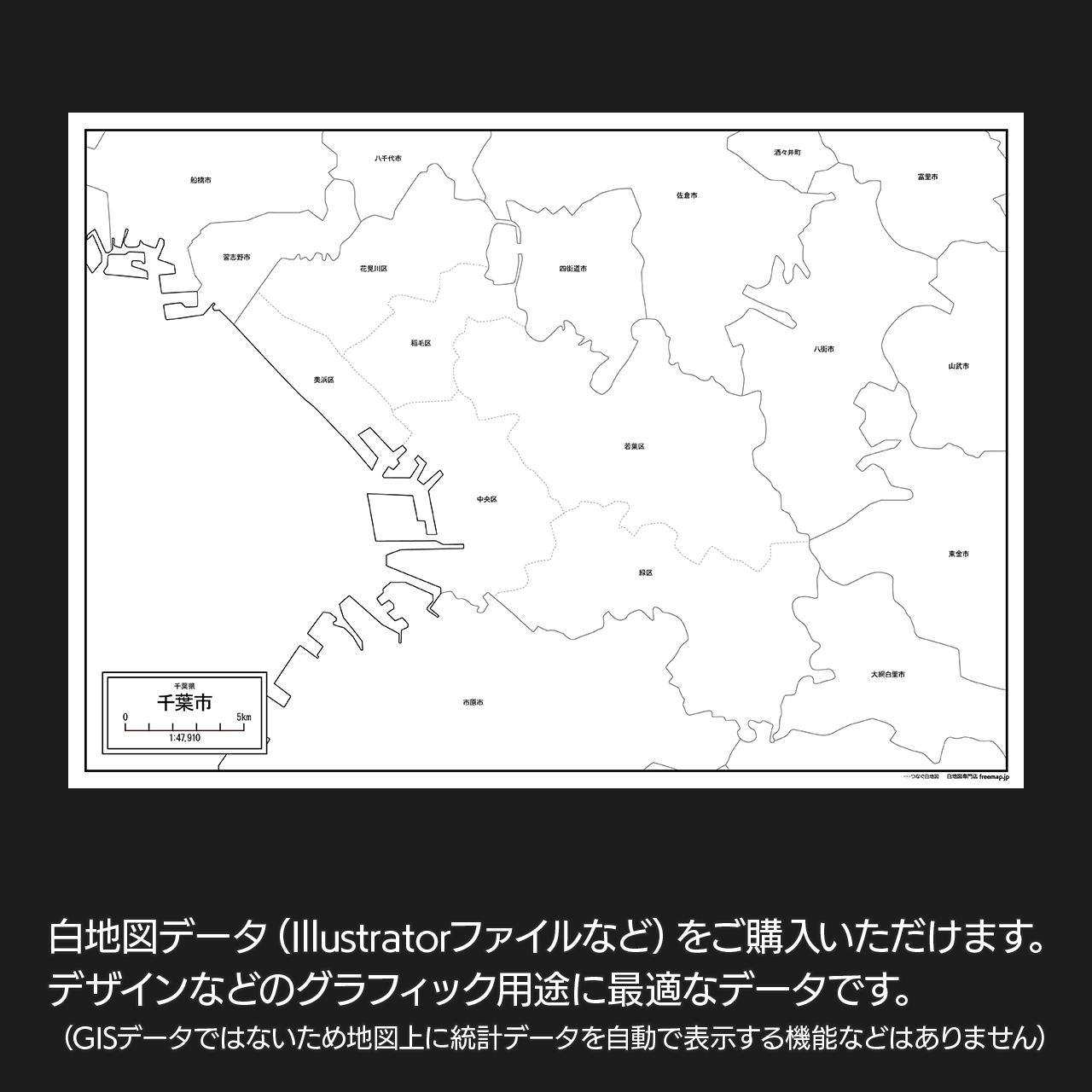 千葉県千葉市:区も記載の白地図データ(PDF・Aiファイル)