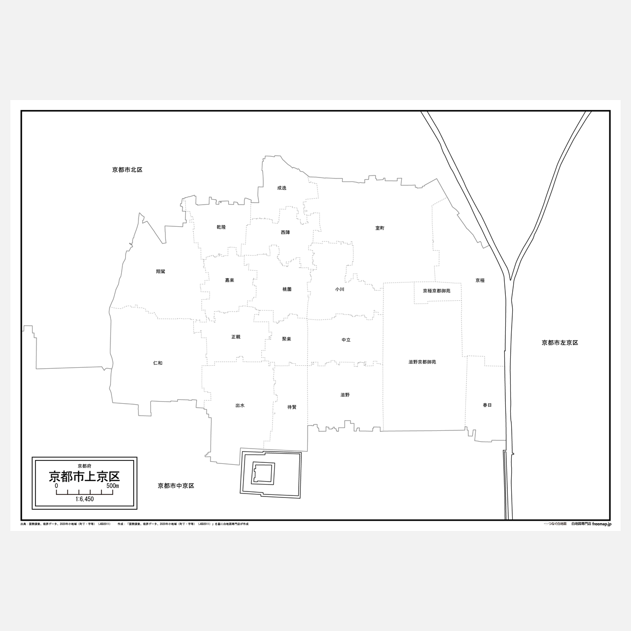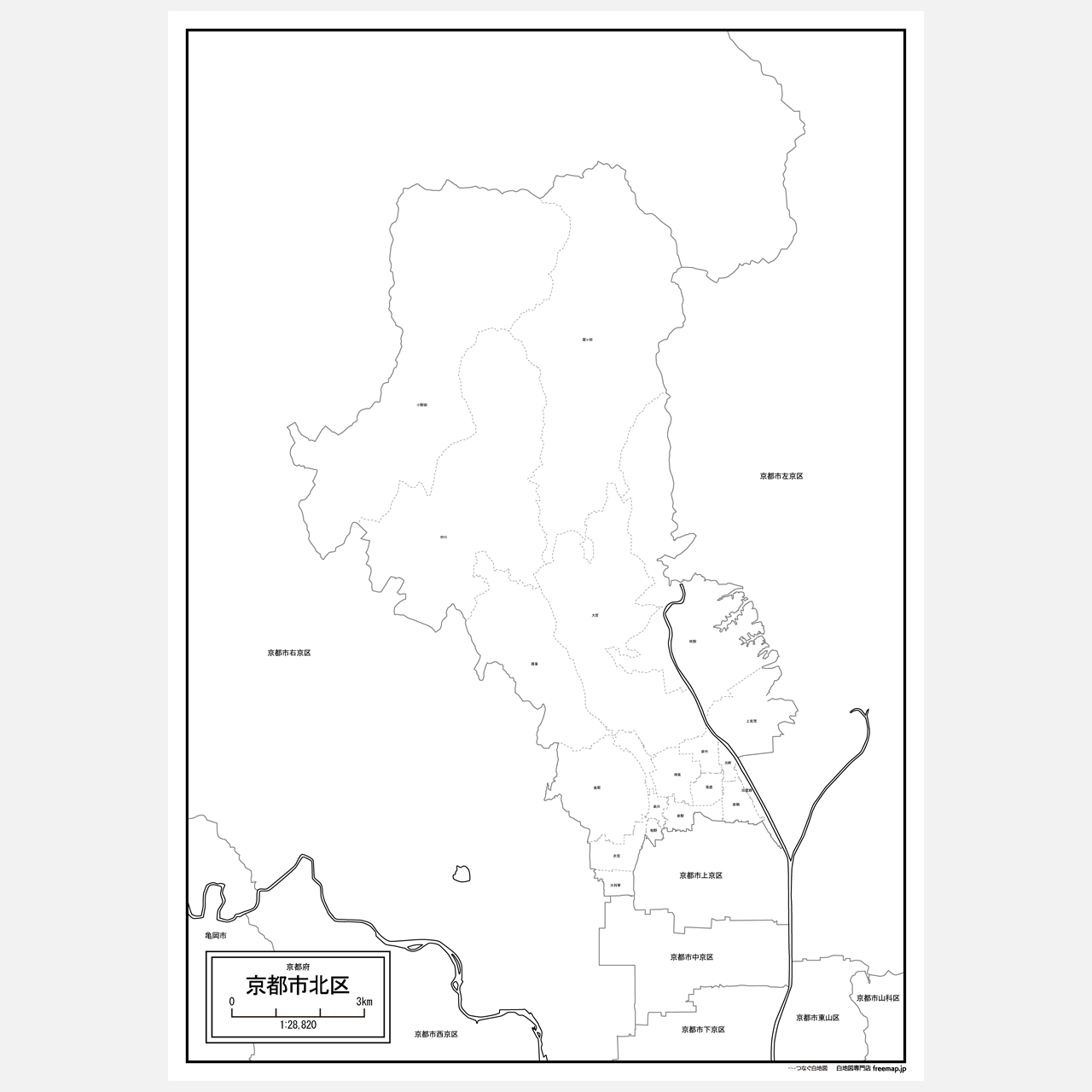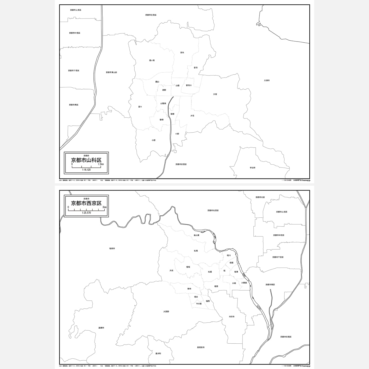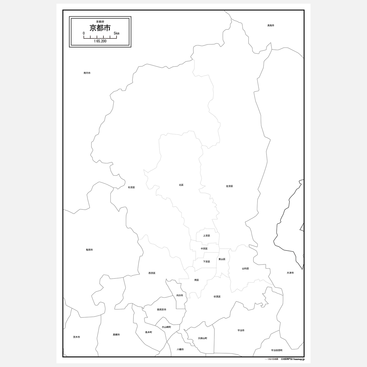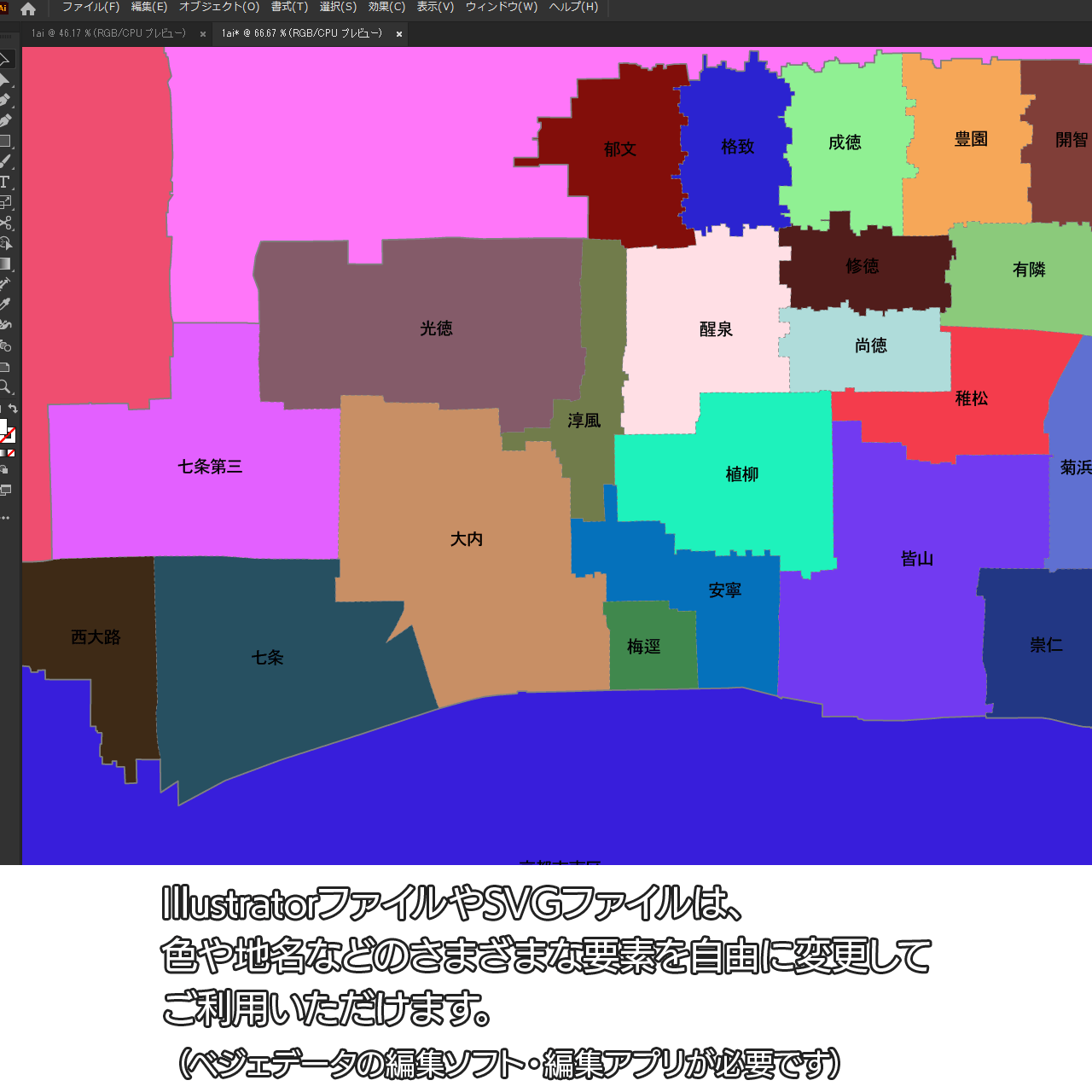京都市全体の白地図と各11区のセット(Aiファイル)