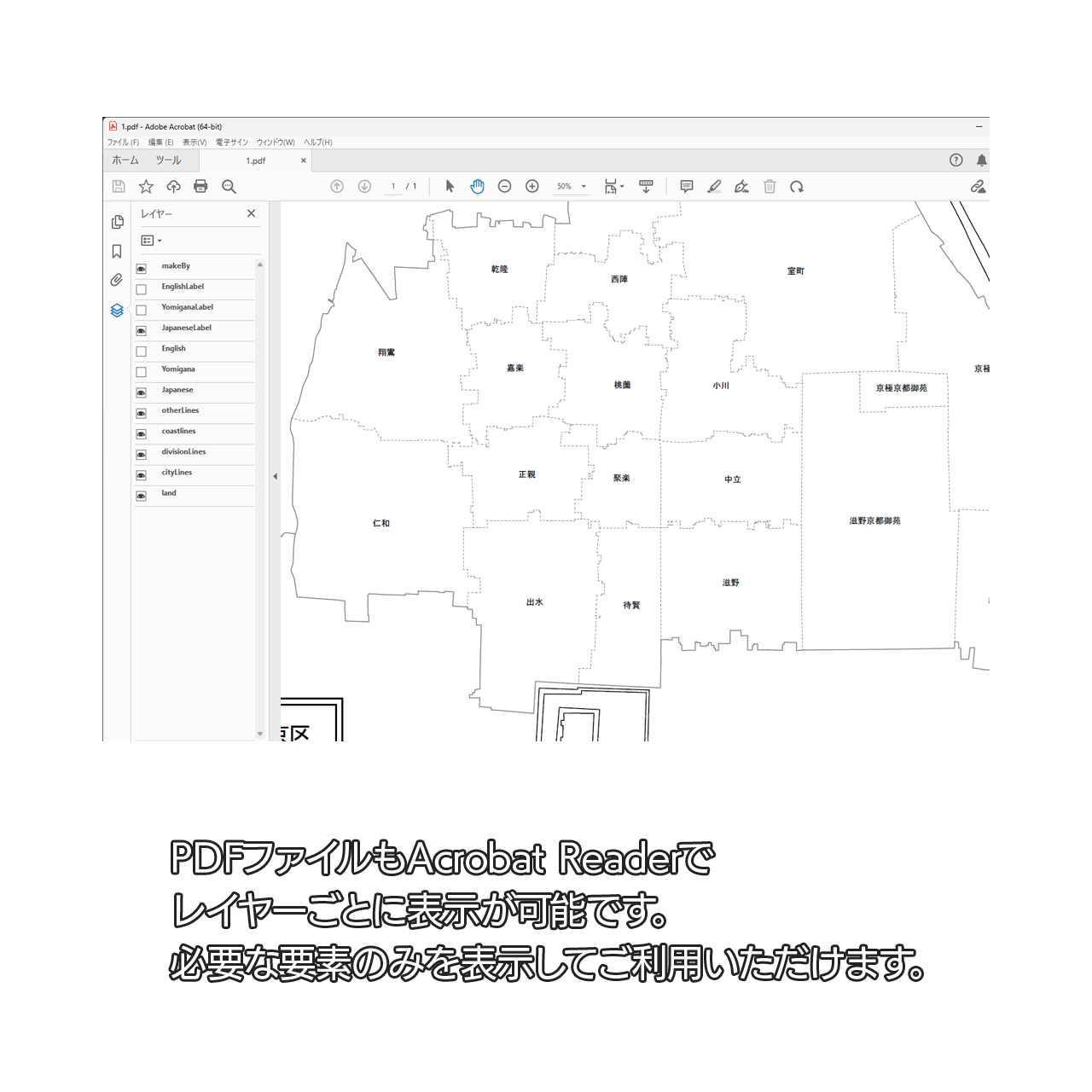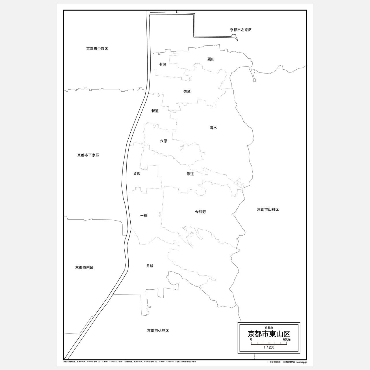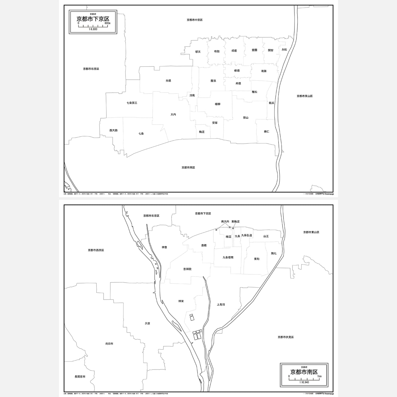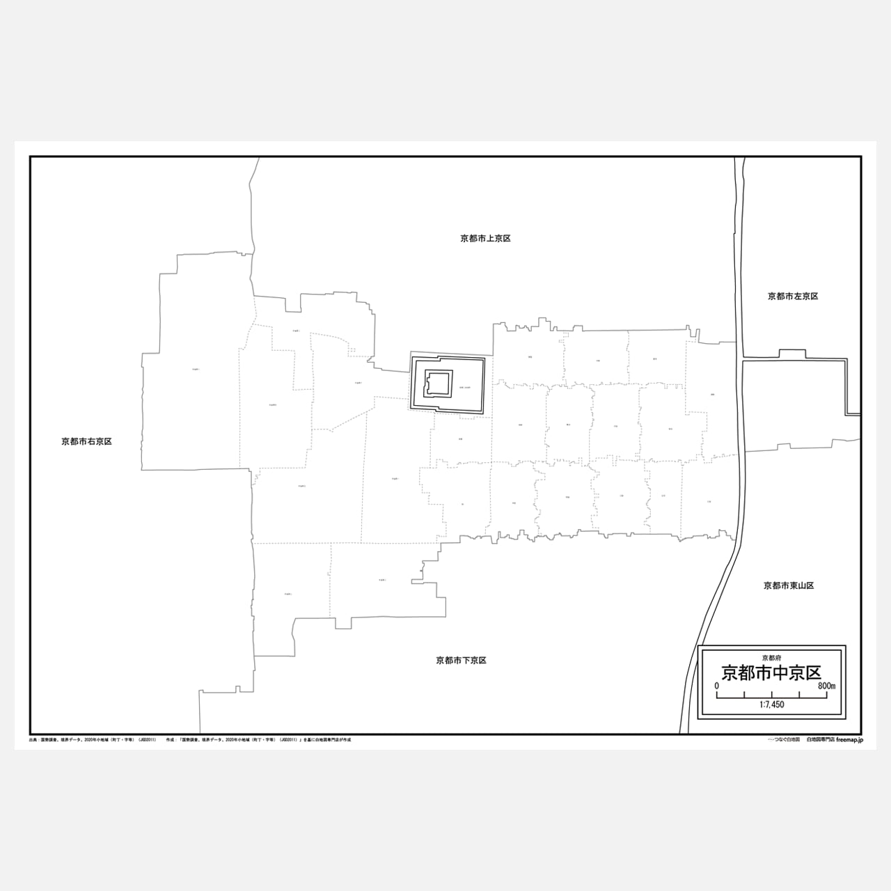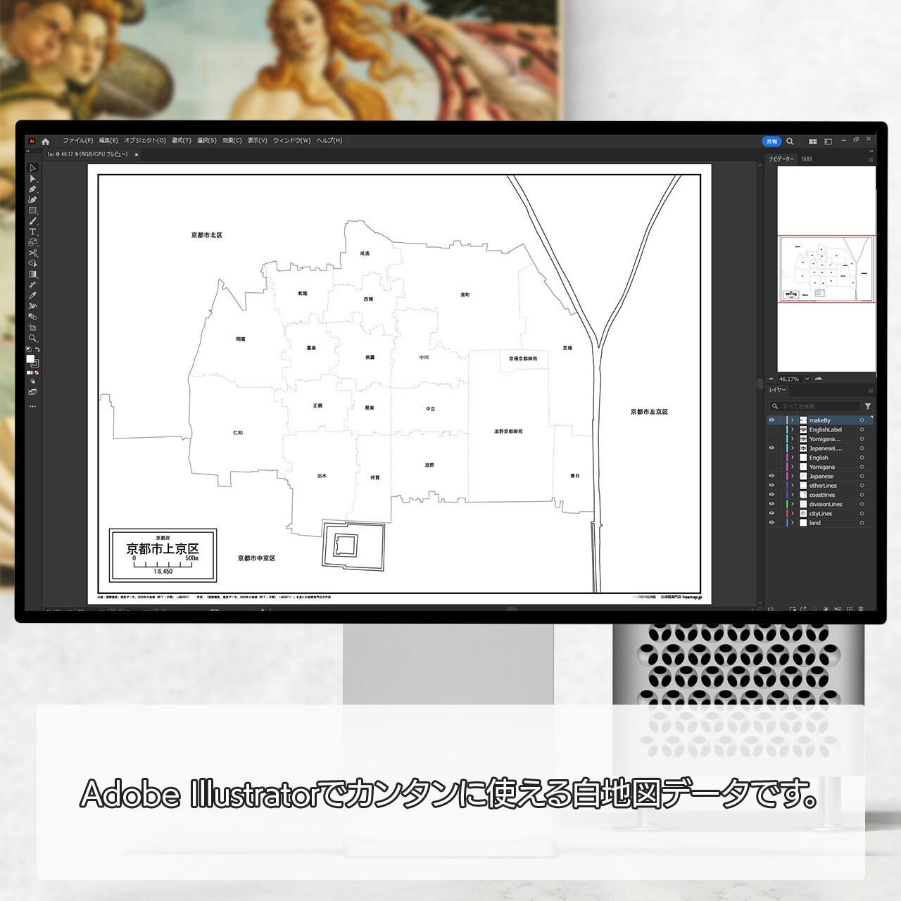京都市全体の白地図と各11区のセット(Aiファイル)