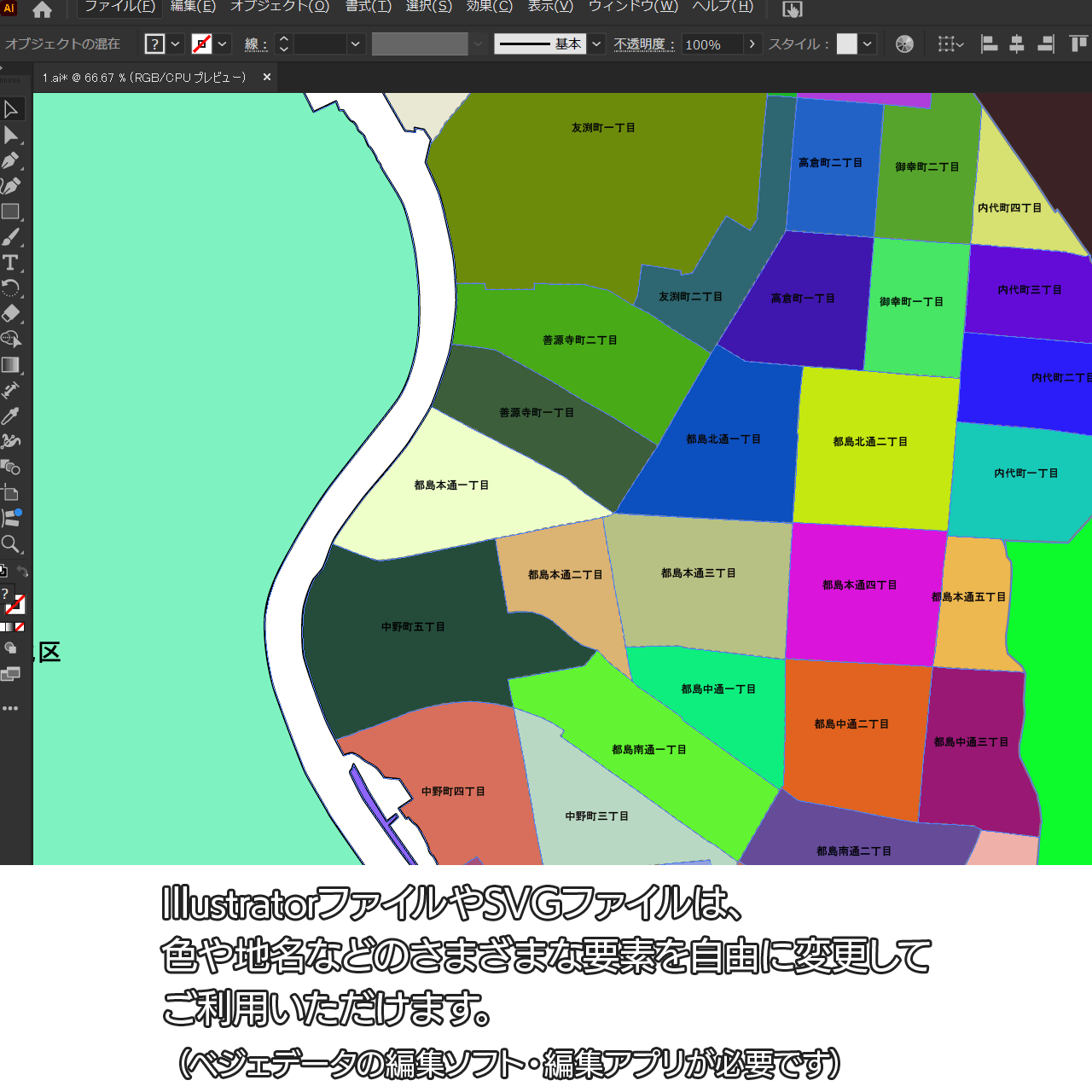 AiファイルはAdobe Illustratorで再編集可能な白地図データです。