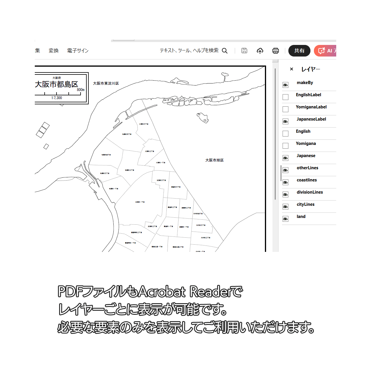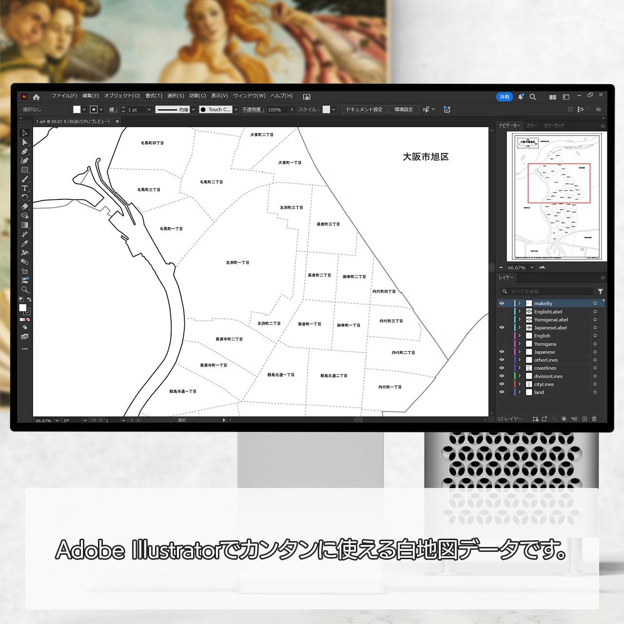 大阪市都島区:町名も記載の地図データ(PDF・Aiファイル)