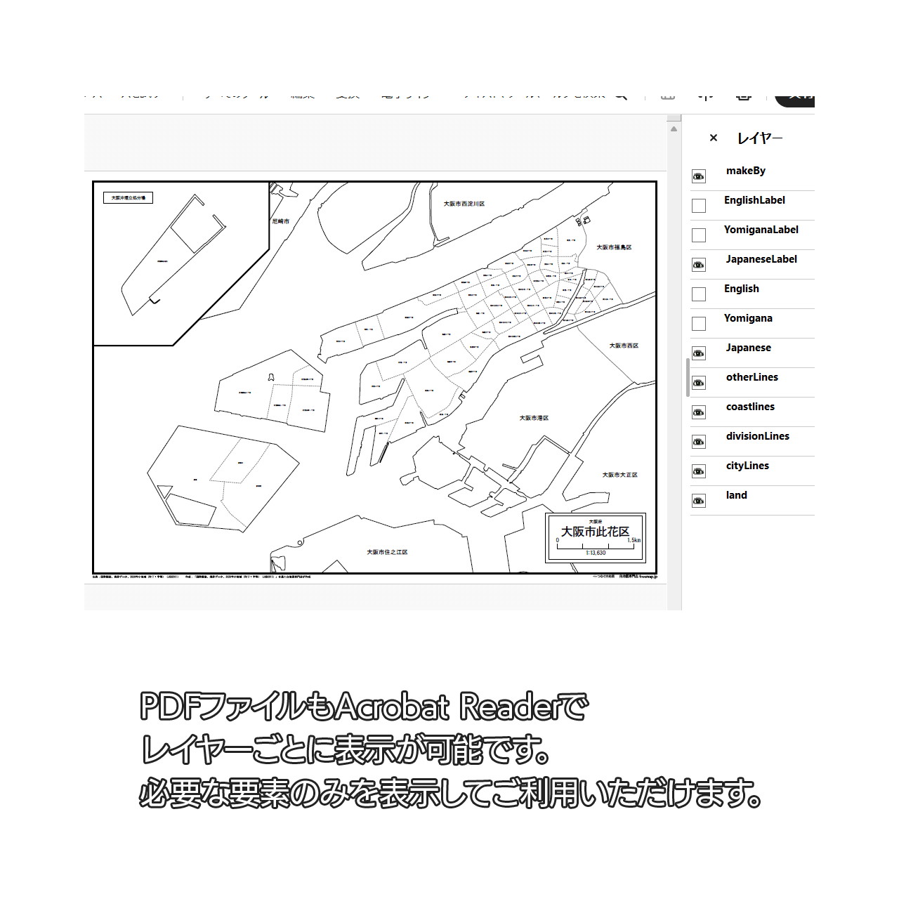 大阪市此花区:町名も記載の地図データ(PDF・Aiファイル)