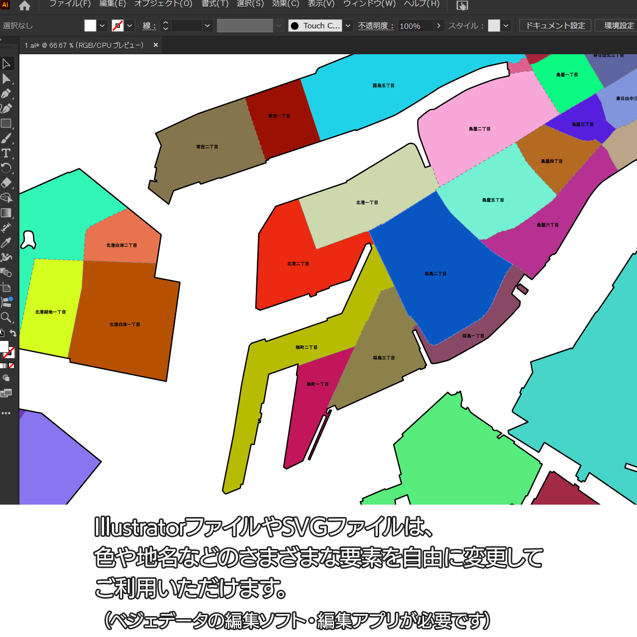 AiファイルはAdobe Illustratorで再編集可能な白地図データです。