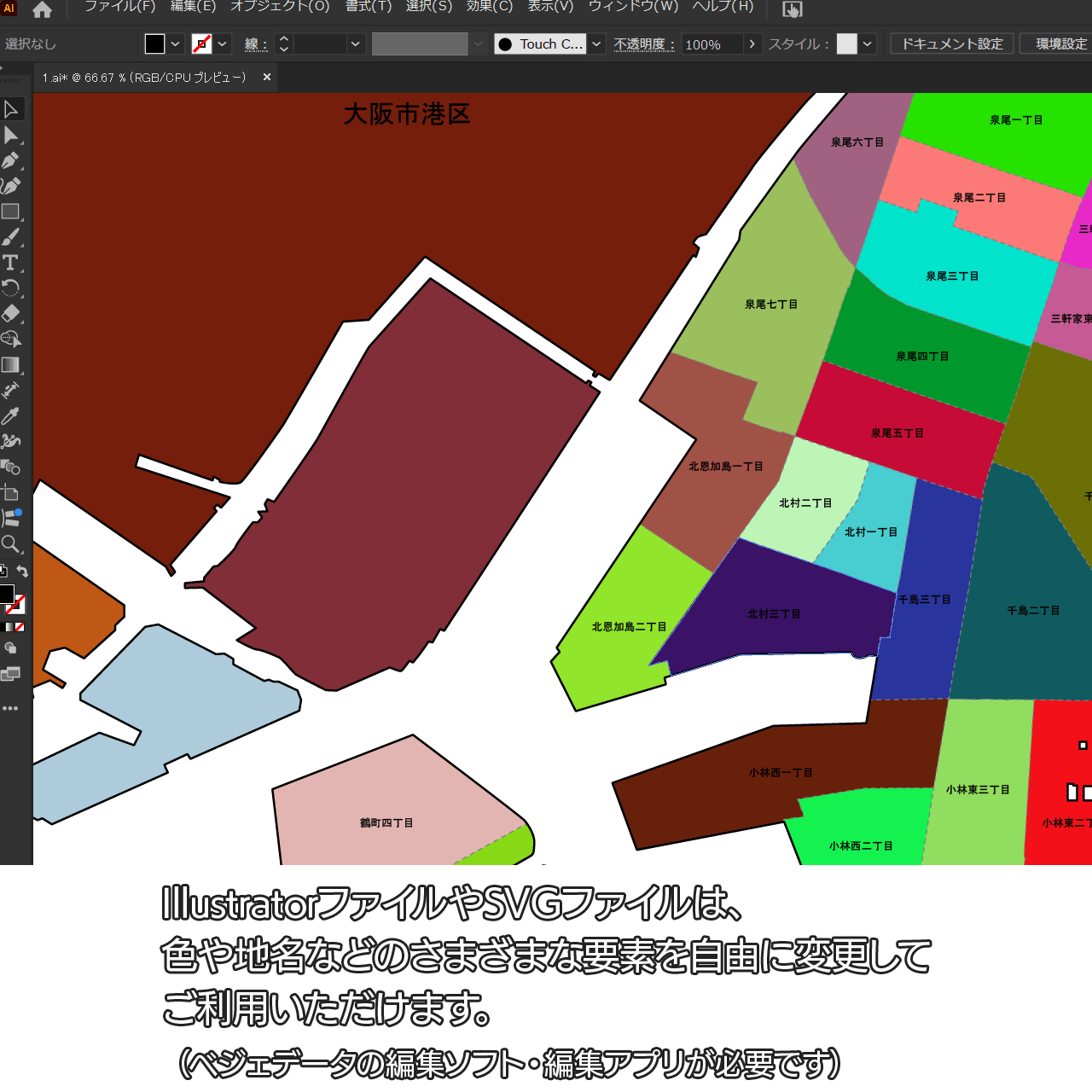 AiファイルはAdobe Illustratorで再編集可能な白地図データです。