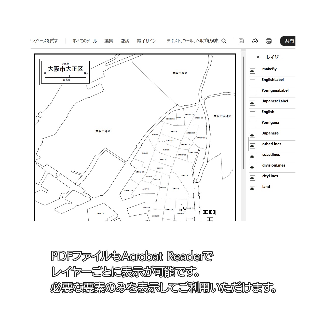 大阪市大正区:町名も記載の地図データ(PDF・Aiファイル)