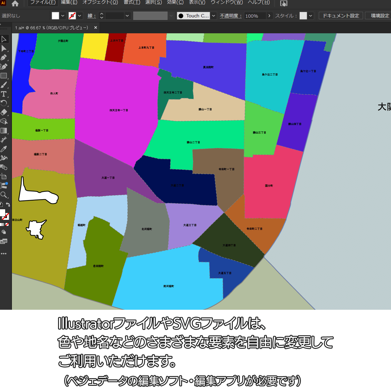 AiファイルはAdobe Illustratorで再編集可能な白地図データです。