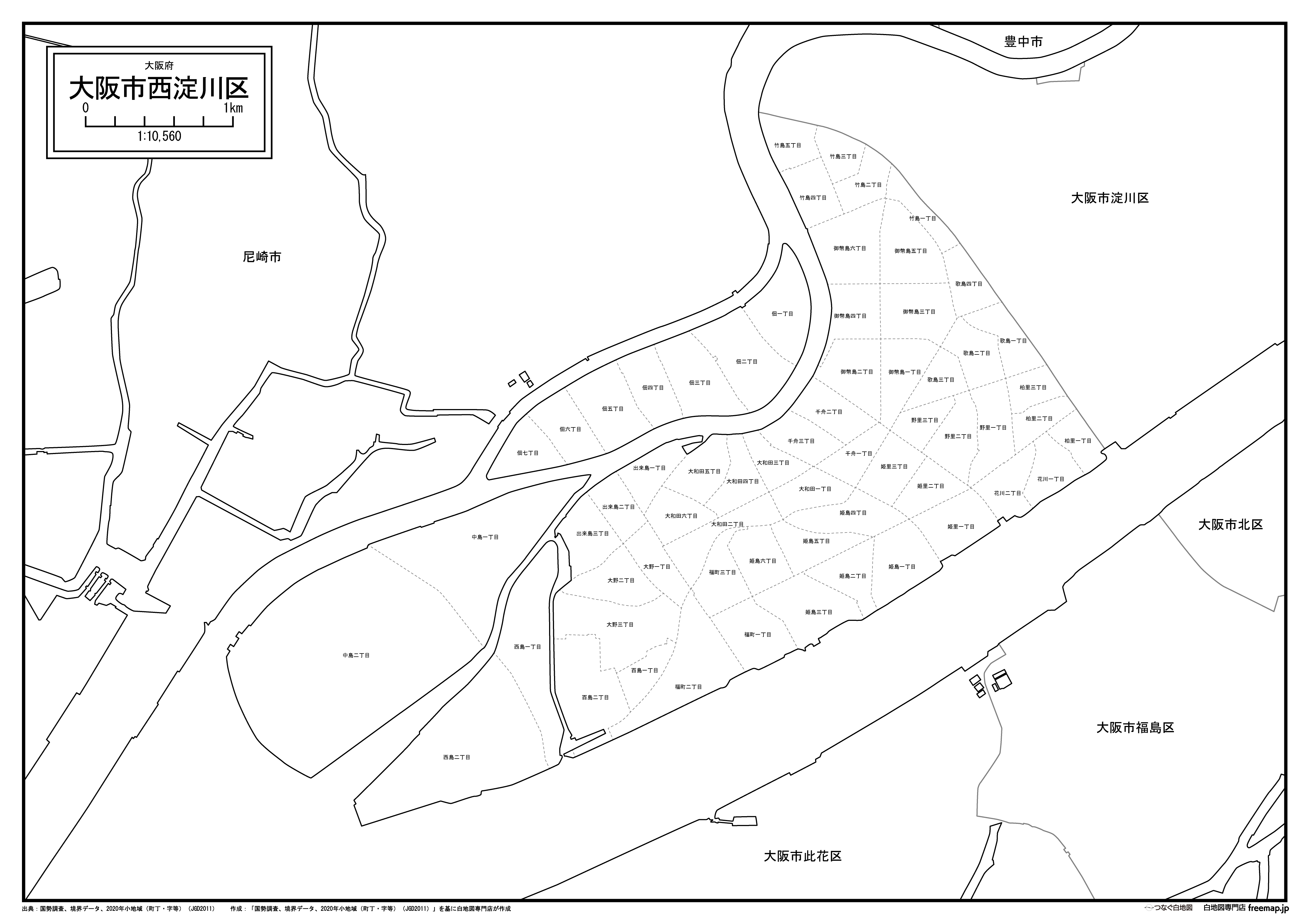 大阪市西淀川区:町名も記載の地図データ(PDF・Aiファイル)