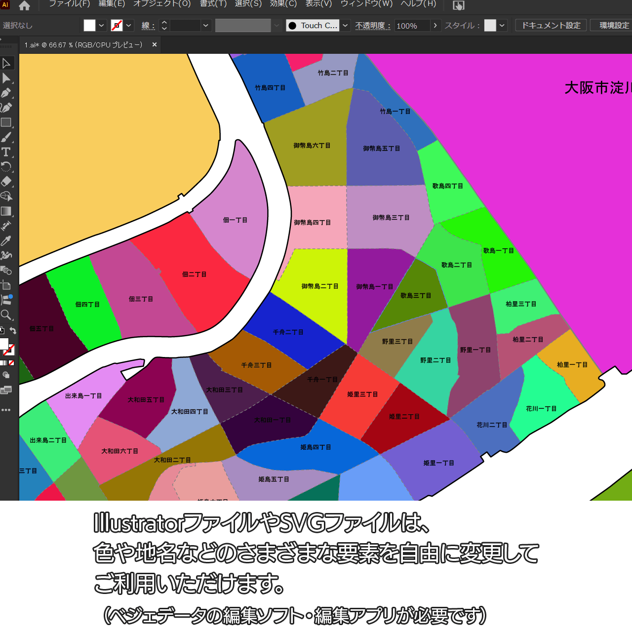 AiファイルはAdobe Illustratorで再編集可能な白地図データです。