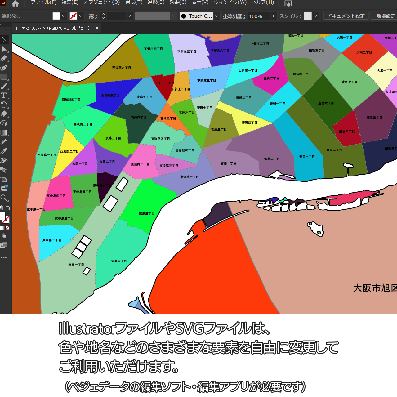 AiファイルはAdobe Illustratorで再編集可能な白地図データです。