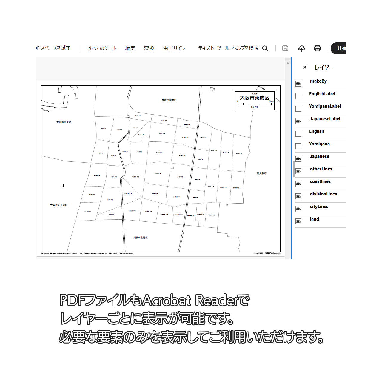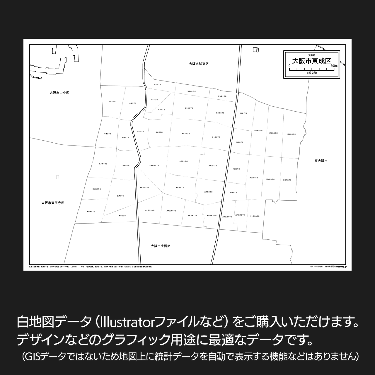 大阪市東成区:町名も記載の地図データ(PDF・Aiファイル)