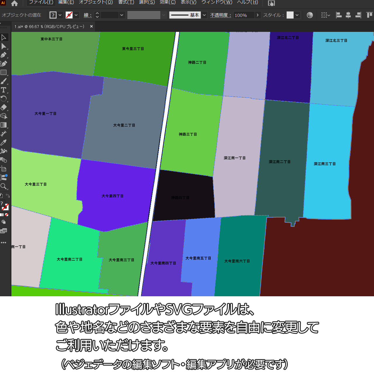AiファイルはAdobe Illustratorで再編集可能な白地図データです。