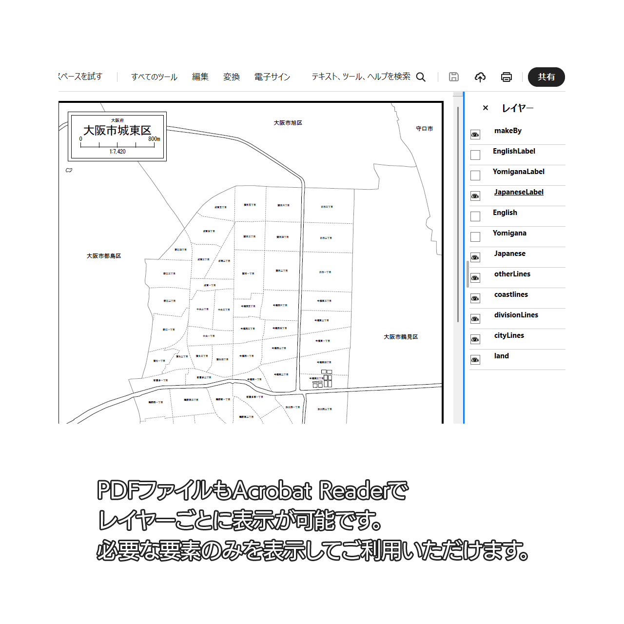 大阪市城東区:町名も記載の地図データ(PDF・Aiファイル)